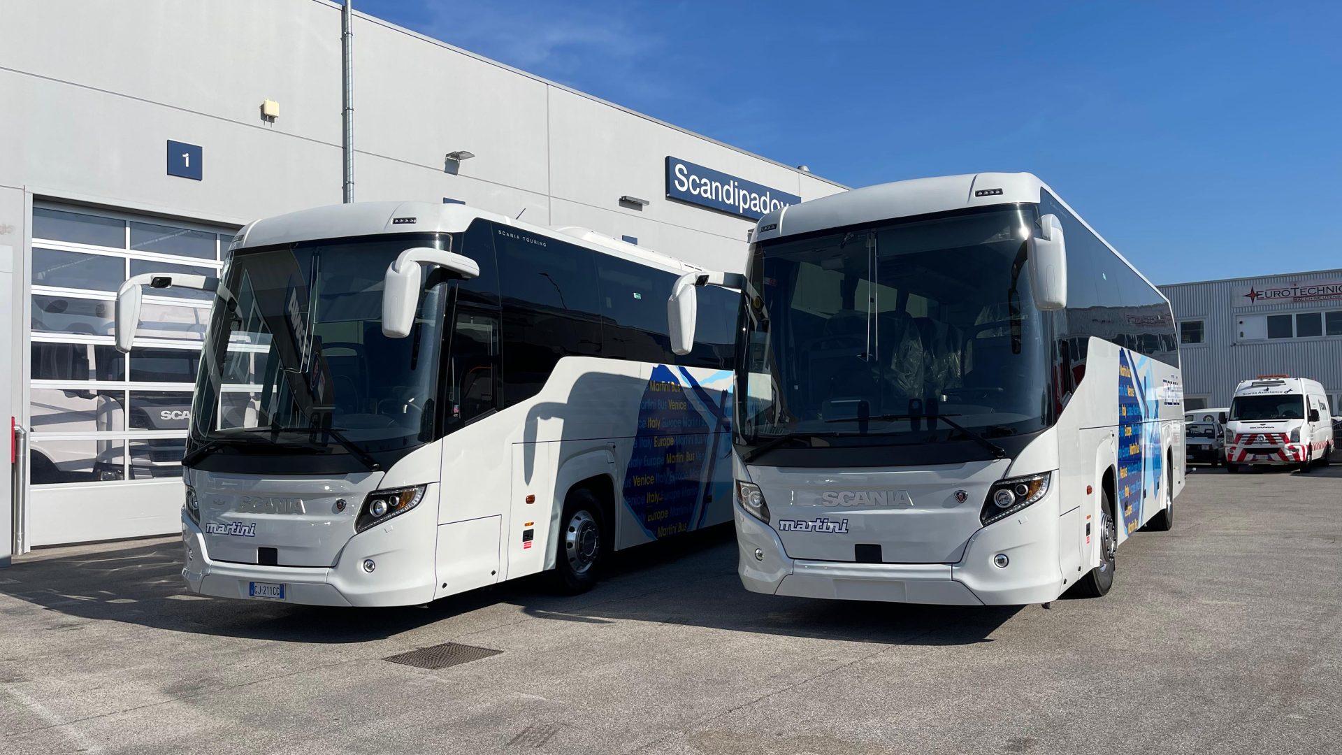 Squadra che vince non si cambia. Martini Bus di Massimo Fiorese ha scelto nuovamente Scania per rinnovare la propria flotta di autobus turistici. Il Grifone, tramite il concessionario Scandipadova ha infatti consegna due nuovi Touring da 12,1 metri di lunghezza e a due assi all’operatore.