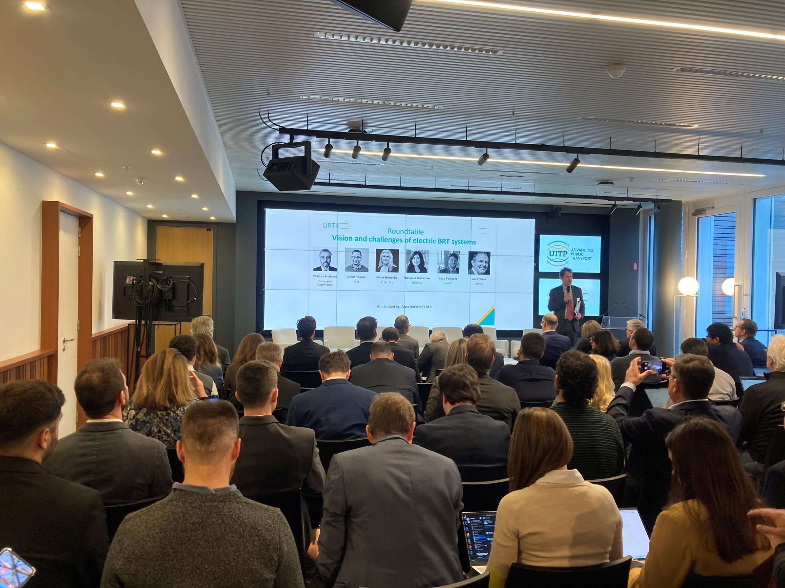 Coordinato direttamente da UITP, eBRT 2030 è stato presentato a l’1 e il 2 febbraio a Bruxelles, riunendo 45 partner leader nel settore del trasporto pubblico: oltre alla Commissione Europea, Polis, Tmb Barcellona, Volvo, Arriva e molti altri.