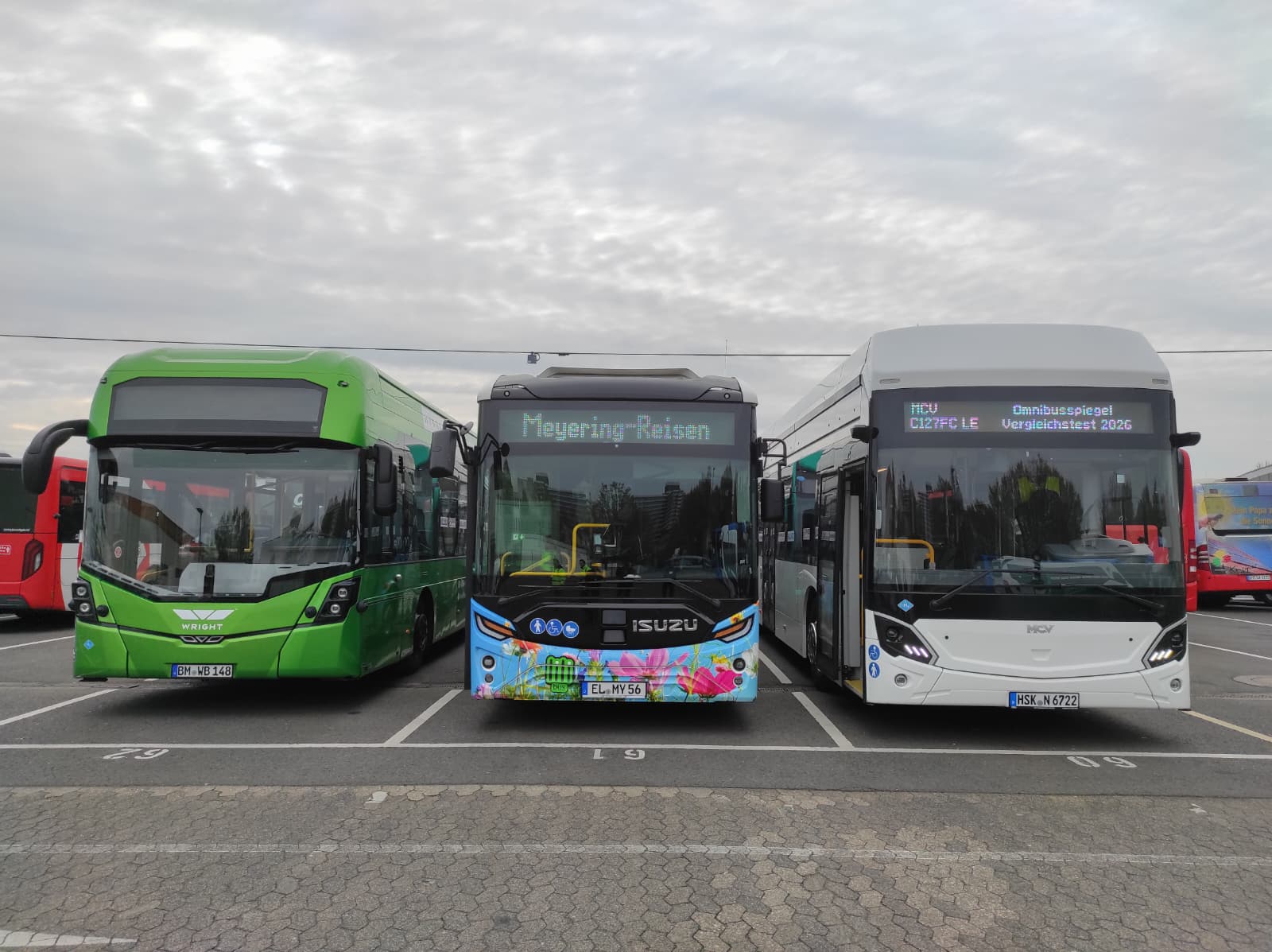 Il ciclo di test 2026 comprende diversi modelli di autobus a celle a combustibile provenienti da costruttori europei e internazionali. Tra i veicoli in prova figurano il Wisdom Motor HY-X 12 (basato su una cooperazione avviata nel 2025), l’eCitaro Fuel Cell, il MCV C127 FC LE presentato a Busworld Europe 2025, il Solaris Urbino 12 Hydrogen e il Wrightbus Kite Hydroliner.
