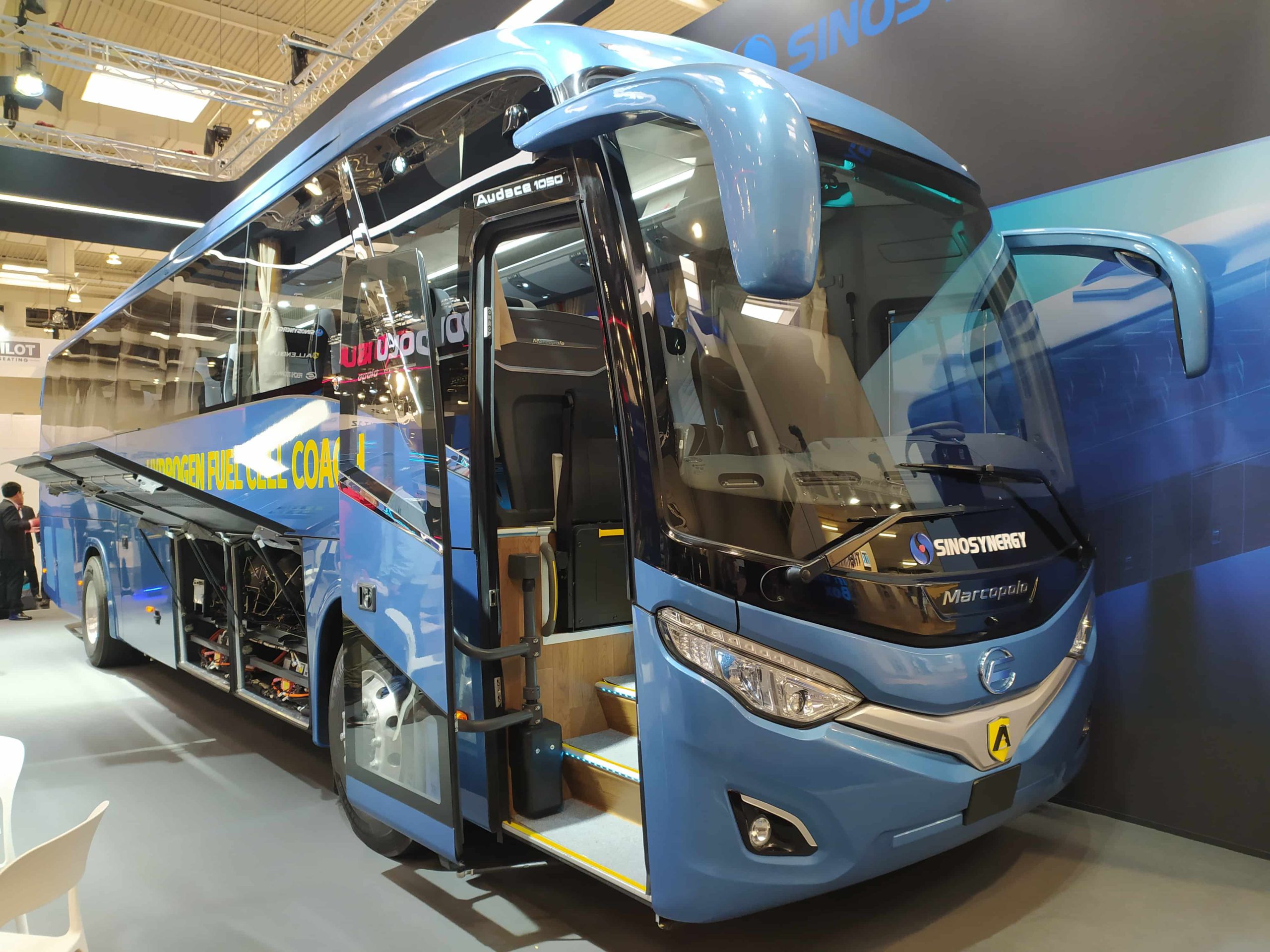 A proposito di coach, sullo strano asse Cina-Hong Kong-Brasile è stato realizzato quello che Sinosynergy, Allenbus e Marcopolo (il principale costruttore di autobus del Sud America) amano definire ‘il primo coach a idrogeno in Europa’. Abbiamo avuto modo di toccarlo con mano allo IAA di Hannover: capacità di 740 litri di H2 e autonomia di ben 500 chilometri in condizioni normali.