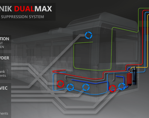 Rivelazione, attivazione e segnalazione istantanea, estinzione rapida, inibizione al reinnesco di un incendio a bordo autobus. Sono queste le caratteristiche dei sistemi di estinzione incendi FeuTechnik Max omologati per autobus a gasolio, metano, ibridi, idrogeno, elettrici.