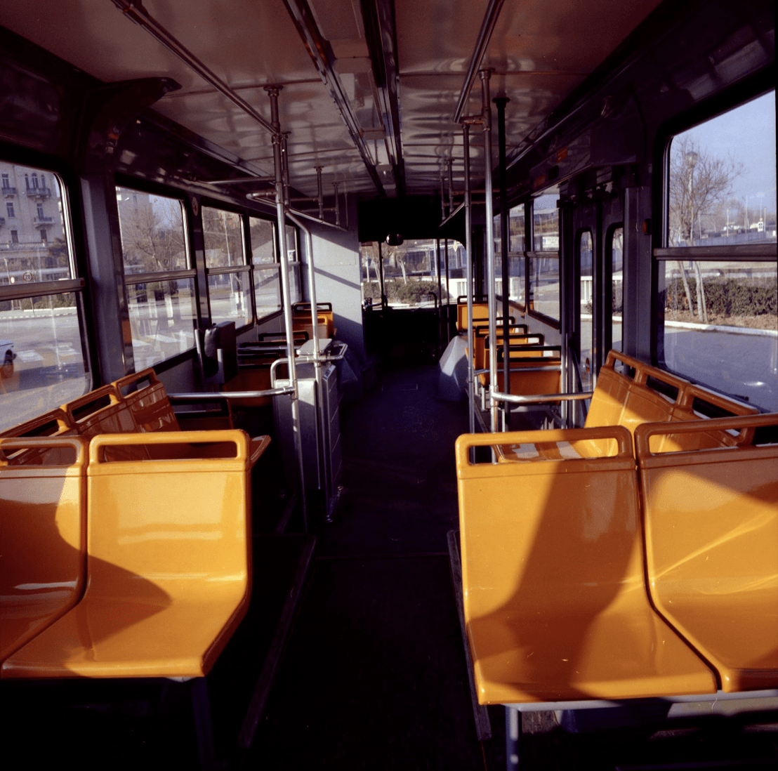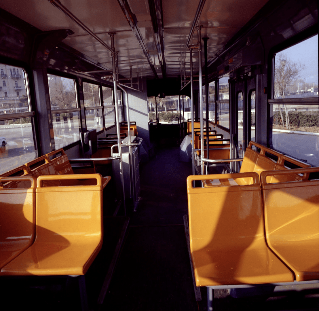 L’interno del veicolo, molto luminoso, prevedeva nella parte anteriore una zona di transito veloce, per brevi tratte, con pochi posti a sedere, e nella parte posteriore, dotata di più sedute, la zona per gli spostamenti più lunghi. L’ambiente era ventilato da finestrini apribili per la metà superiore.