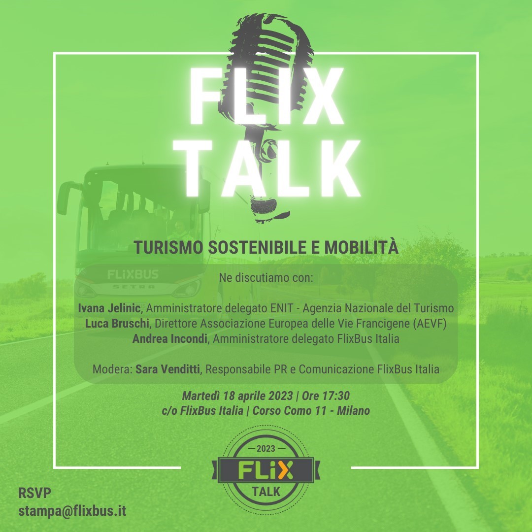 FlixBus inaugura FlixTalk, un nuovo luogo di confronto in cui parlare delle nuove sfide e opportunità di un settore, quello della mobilità, come parte integrante del sistema Paese e volano di democratizzazione e decarbonizzazione del viaggio, capace quindi di contribuire alla qualità della vita delle comunità e alla creazione di opportunità per il territorio.