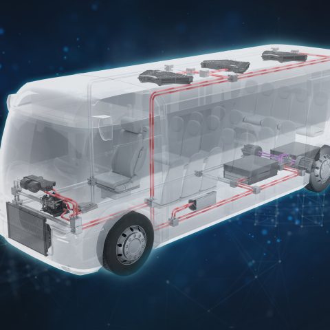 Il sistema si avvale di una pompa di calore che, in combinazione con scambiatori di calore, riscaldatori ad alta tensione, riscaldamento a pavimento e condizionatori elettrici a tetto, garantisce temperature piacevoli in tutte le aree del veicolo. I valori massimi di efficienza energetica sono raggiunti grazie all’elevata efficienza della tecnologia di climatizzazione impiegata e al recupero intelligente del calore dal motore elettrico.