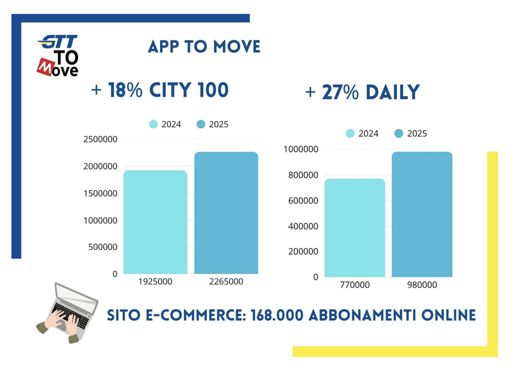 Anche le vendite via app ed e-commerce dei titoli di viaggio del trasporto pubblico locale restano solide: l’abbonamento più richiesto è l’Under 26 mensile, mentre tra i biglietti singoli continuano a dominare il City e il Daily, entrambi in crescita mese dopo mese.