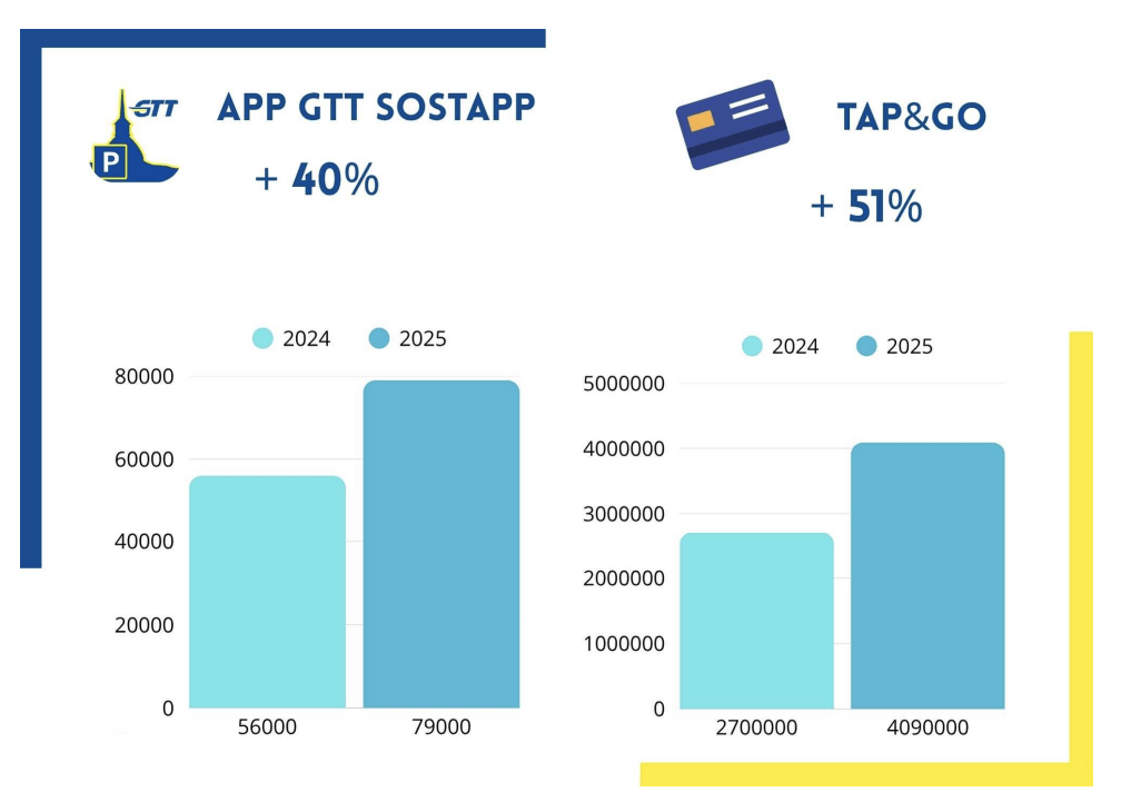 Tra i dati più rilevanti spiccano i 79.000 abbonamenti e carnet di sosta acquistati tramite SostApp, con un incremento del 40% rispetto allo stesso periodo del 2024. Il sistema Tap&Go, che consente di accedere ai mezzi con carta contactless, ha superato i 4 milioni di biglietti City 100 venduti, contro i 2,7 milioni dello scorso anno, segnando un +51%.