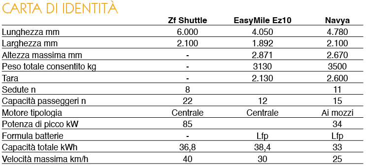Lo shuttle proposto da Navya nasce dalla ricerca e sviluppo che la società con sede principale a Lione, ma presente anche negli Stati Uniti e Singapore, ha direttamente svolto nel campo della guida autonoma. Anche Navya ha scelto per i propri veicoli la propulsione elettrica nell’ottica di consentire ai propri clienti di implementare flotte a zero emissioni. Per il loro funzionamento i mezzi si avvalgono del controllo tramite segnale Gnns (localizzazione satellitare) e sensoristica lidar, inerziale e odometrica, il tutto utilizzato con l’ausilio delle telecamere di bordo per il riconoscimento del tracciato, associato alla preventiva mappatura 3D del percorso. Per la comunicazione V2x vengono sfruttate le potenzialità del 5G attraverso una visione sistemica di mobilità integrata. Lo shuttle ha dimensioni in linea con l’attuale mercato, con una lunghezza di 4,78 metri e larghezza 2,10 metri: la capacità di trasporto è pari a 15 persone di cui 11 possono viaggiare sedute. I due motori elettrici (motoruote) di potenza costante 22,6 kW consentono di sviluppare una velocità massima fino a 25 km/h grazie alla presenza di batterie di trazione con capacità di 33 kWh ed un’autonomia dichiarata fino a 9 ore. Il sistema Navya è stato sperimentato in diversi siti, tutti gravati da intersezioni veicolari e pedonali proprio allo scopo di testarne le prestazioni: tra questi Lione (Groupama Stadium), Singapore (Gardens by the Bay) e negli Stati Uniti in Florida (Lake Nona). Poco prima di andare in stampa, la società ha dichiarato di aver presentato domanda di cessazione dei pagamenti presso il Tribunale commerciale di Lione. Il prezzo delle azioni di Navya alla borsa di Parigi è precipitato negli ultimi due anni fino a 3 centesimi (a fronte dei 4 euro di fine 2020).