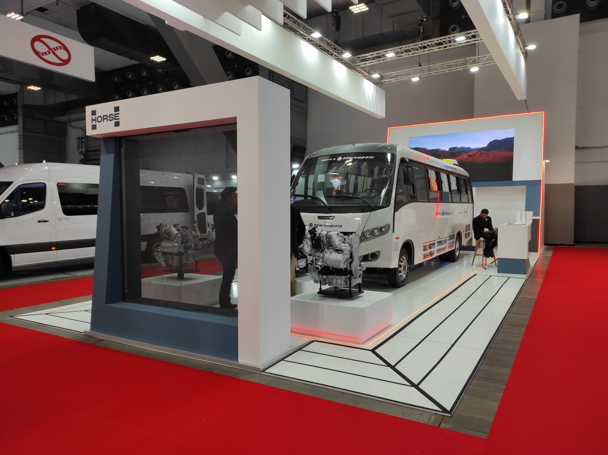 Al Busworld abbiamo presentato l’Horse H10 REEV, installato nel Marcopolo Volare Attack 9, un minibus ibrido. Questo sistema può erogare 70 kW di potenza elettrica continua e garantire fino a 450 km di autonomia. Insieme a questo motore, abbiamo esposto anche i nostri sistemi K15 e M20 REEV: soluzioni scalabili, adattabili a diverse dimensioni di autobus e profili operativi. Abbiamo inoltre mostrato il nostro motore a idrogeno Horse M20, facilmente integrabile nelle architetture veicolari esistenti».