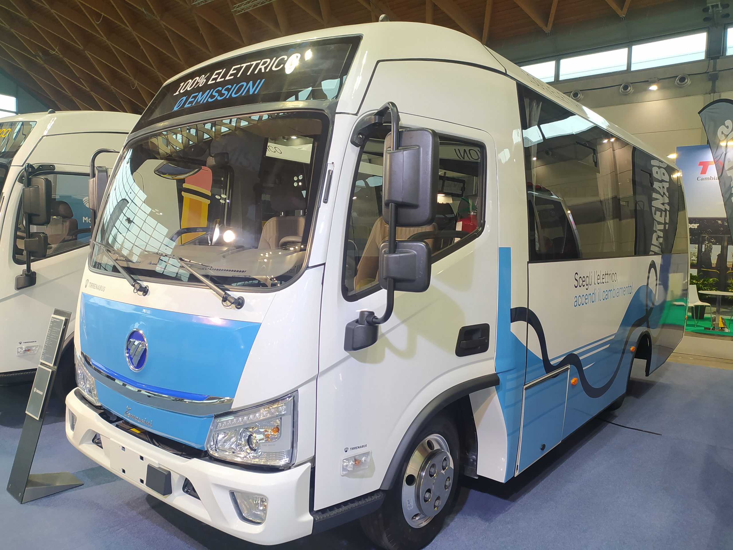 Da citare anche Foton, con tre mezzi, tutti elettrici, di derivazione camionistica, visti che tutti e tre i modelli in esposizione (qui sotto in foto) sono costruiti sullo stesso telaio del mini truck elettrico e-Aumark L6, il Foton e-Aumark L6 in versione minibus per il tpl e scuolabus – nonostante le piccole dimensioni –, si è fatto notare.