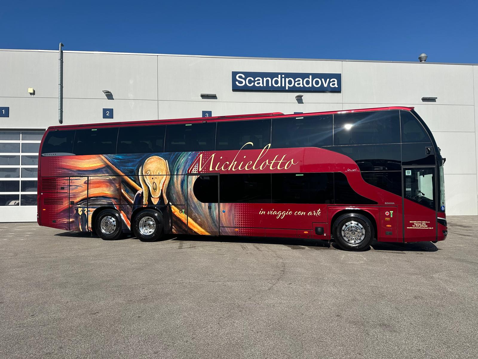 Come tutti i coach della Michielotto, anche questo due piani veste una livrea artistica, che come potete ben vedere nelle foto ritrae il celeberrimo Urlo di Edvard Munch.