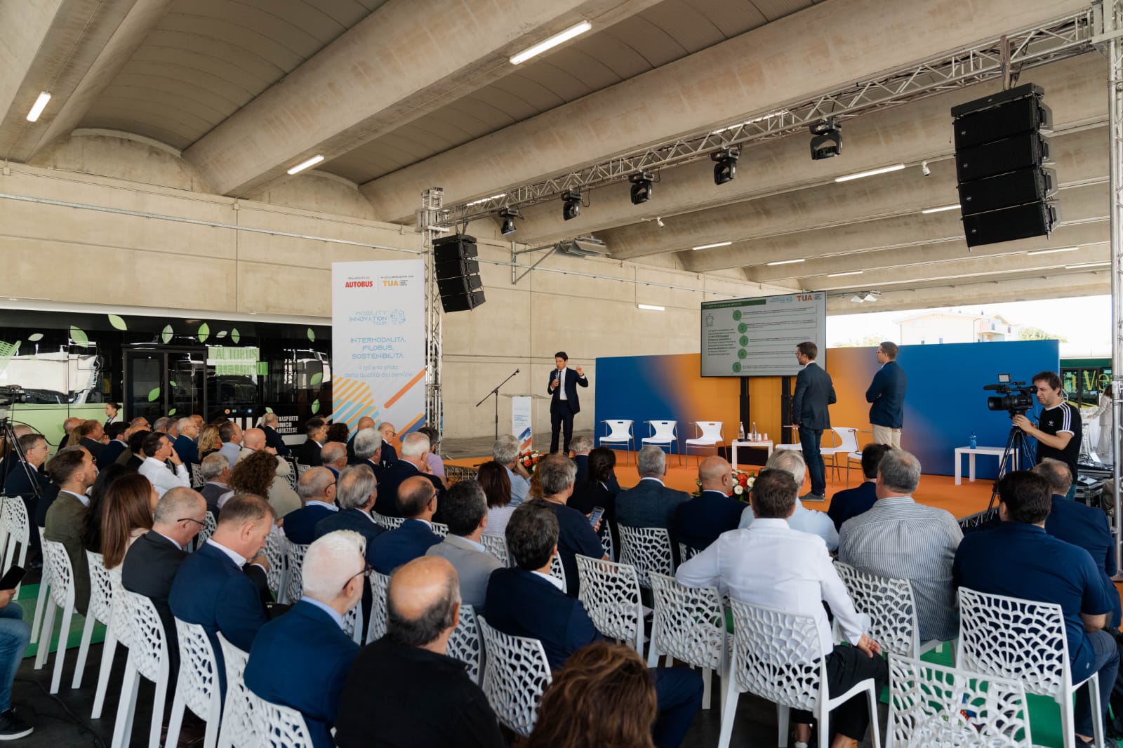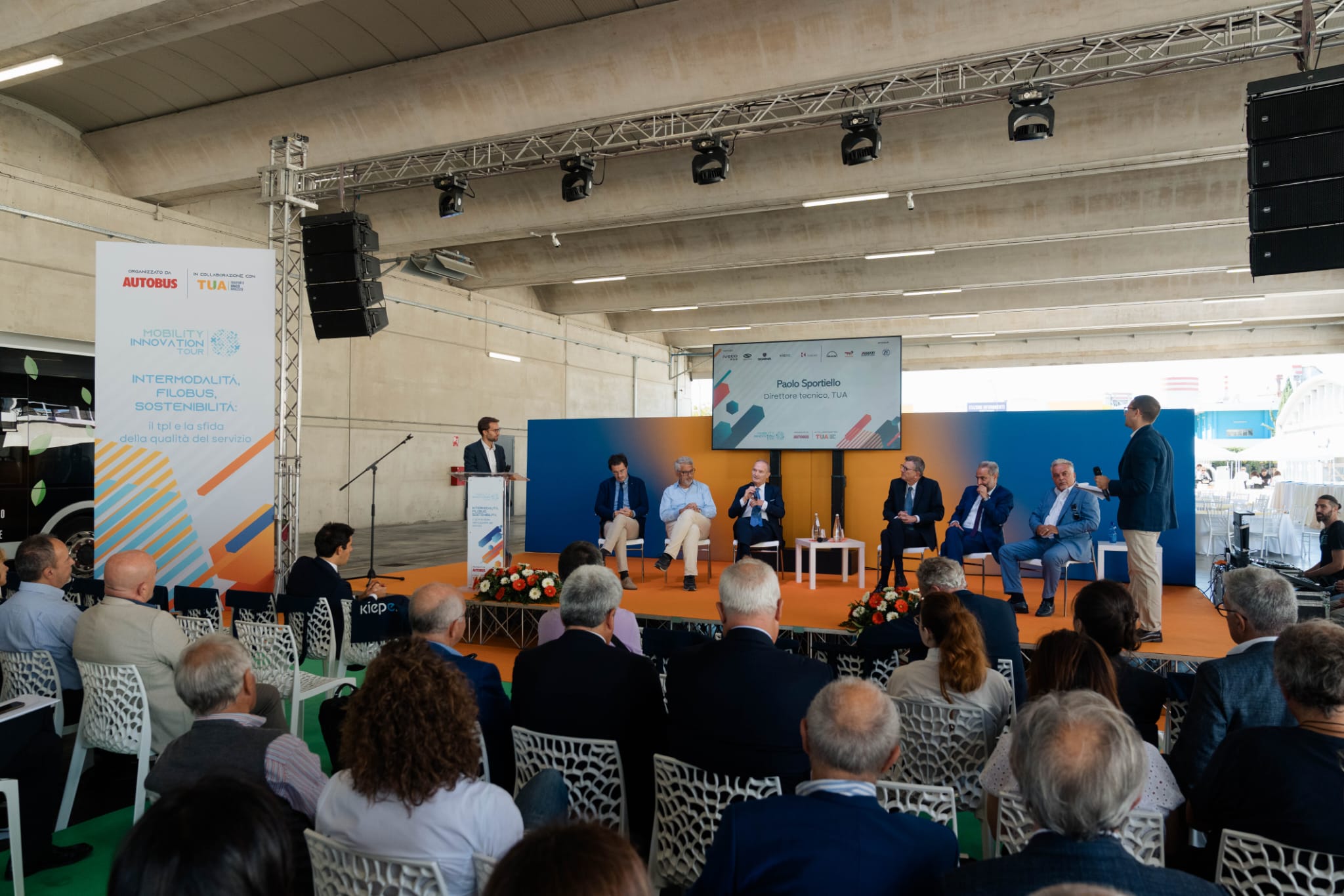 La mattinata di lavori si è aperta con i saluti introduttivi di Gabriele De Angelis, presidente di TUA, che ha sottolineato come l’entrata in servizio della filovia (capace in una sola settimana di superare i 6.000 passeggeri al giorno) abbia rappresentato un cambio di paradigma per l’azienda: “Fino all’altro ieri avevamo soltanto treni e autobus, oggi abbiamo anche la filovia, che in pochi giorni ha incontrato un successo straordinario. Significa meno emissioni, più modernità e soprattutto intermodalità: è questo il concetto chiave attorno al quale si muove la nostra strategia, in linea con gli obiettivi europei del Green Deal. Puntiamo a un sistema di trasporto integrato che renda il servizio più armonico ed efficiente, migliorando la qualità della vita dei cittadini”.