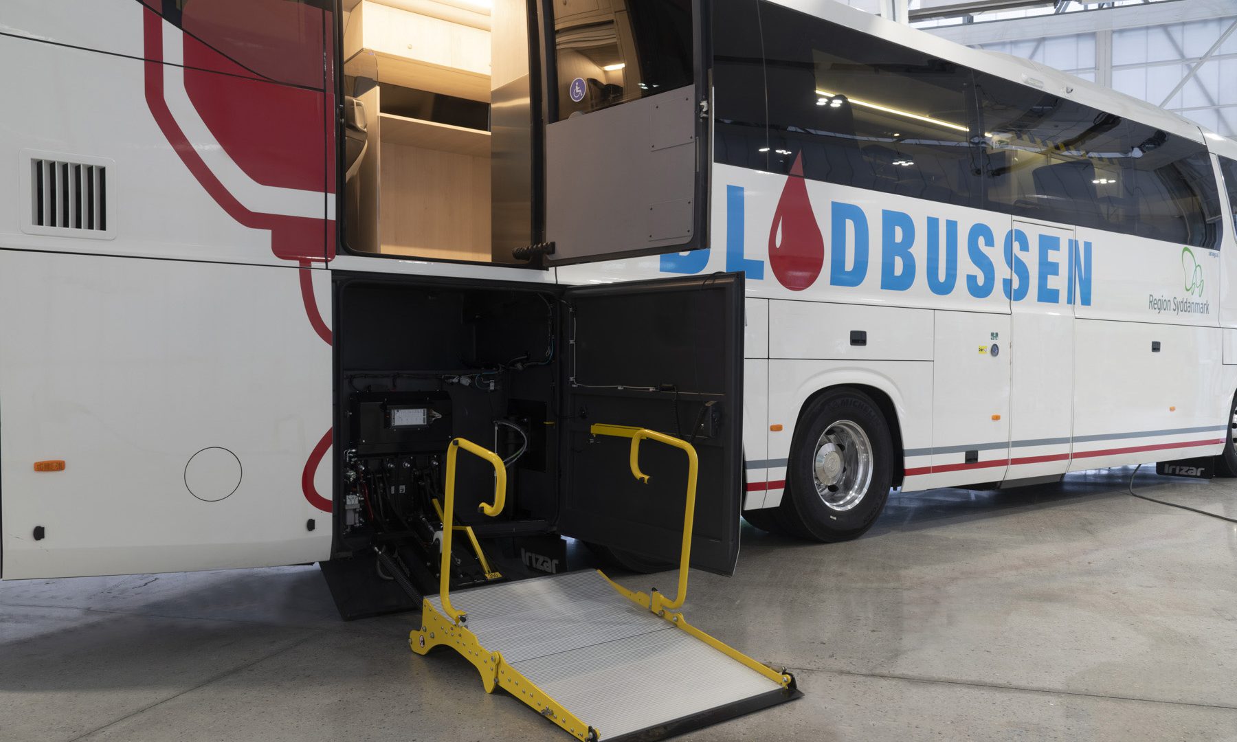 Irizar. La flessibilità e la grande capacità di personalizzazione e di adattamento alle esigenze dei nostri clienti ci ha permesso di creareil pullman Blodbussen, che rimarrà parcheggiato all’ospedale pubblico di Odense durante la notte e viaggerà durante il giorno in diverse località della Danimarca meridionale per promuovere e facilitare la donazione di sangue in questa zona.Â