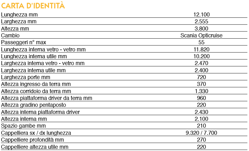 Le cappelliere sono realizzate evitando angoli vivi anche nelle parti interne, a tutto vantaggio dell’igiene e della pulizia. I sedili Kiel sono equipaggiati di serie con prese Usb, una per ciascuna seduta, in opzione è possibile dotare il mezzo di prese elettriche a 220 V grazie alla predisposizione di un inverter aggiuntivo che, se presente, può alimentare anche la macchina per il caffè. Il nuovo disegno dei sedili permette anche di aumentare lo spazio a disposizione per le gambe dei passeggeri e, combinato alle modifiche che riguardano anche i poggiapiedi, rende l’esperienza di viaggio ancora più confortevole dal punto di vista del passeggero. Piacevole anche la visuale panoramica ottenuta con una progressiva elevazione del piano di calpestio verso la parte posteriore dove l’altezza da terra risulta di circa 12 cm maggiore che nella parte anteriore.