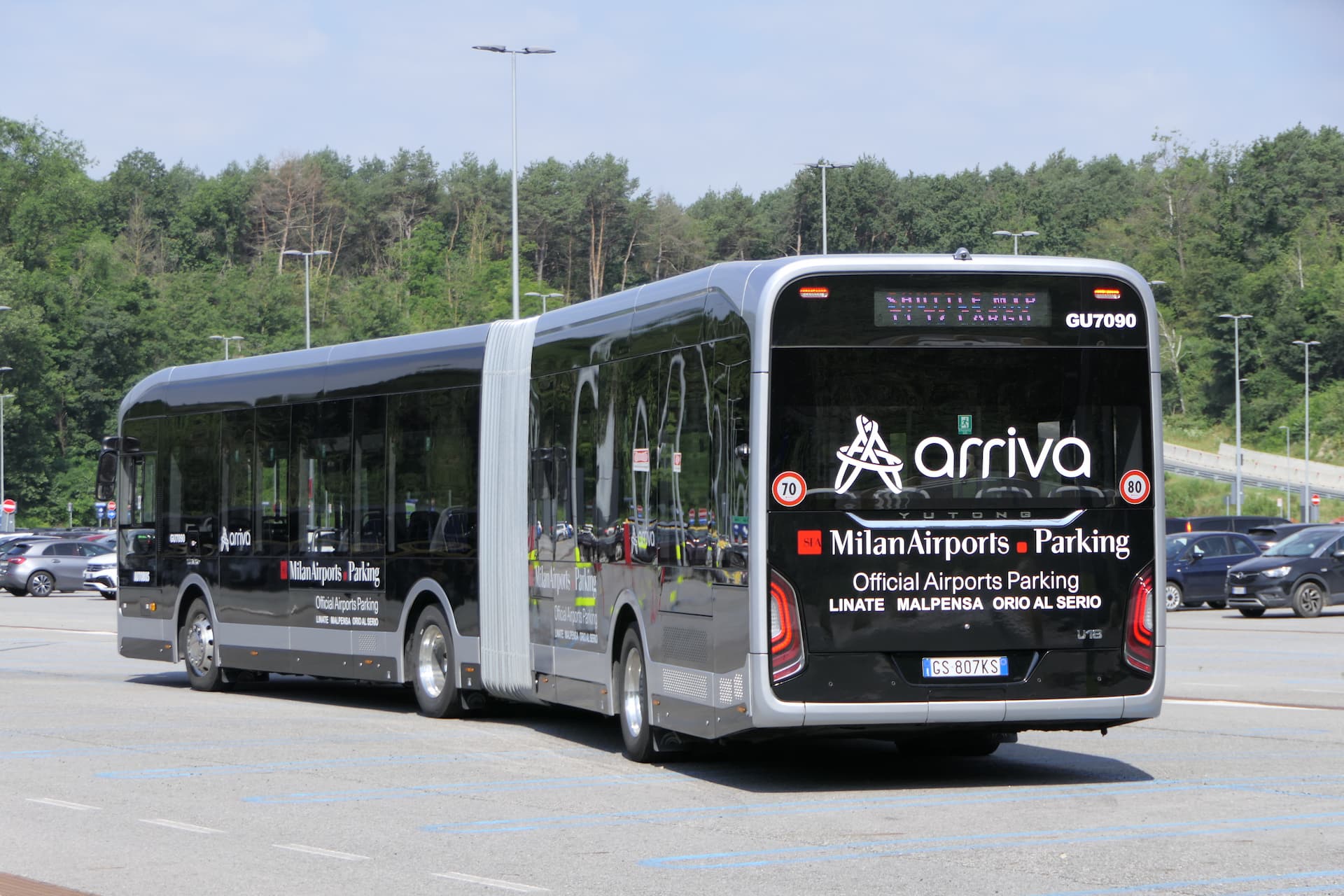 Yutong, uno dei maggiori produttori mondiali di e-bus (se non il primo in assoluto per volumi di vendita), è presente oggi in Italia con 92 mezzi e altri 83 in consegna e rappresentato dal 2020 dal dealer Powerbus, con sede a Marghera: Arriva ha scelto di puntare sullo snodato U18 con una lunghezza di 18,72 metri, quindi prossima al massimo ammissibile per quella categoria di veicoli, per il trasporto dei passeggeri tra parcheggi e terminal dell’aeroporto di Malpensa. Immesso in servizio nel primi mesi del 2024, l’autosnodato fa parte della gamma più recente del costruttore cinese, caratterizzata da una linea rinnovata, dall’aspetto più arioso e leggero, e soprattutto da un innovativo frontale che vede nei proiettori sovrapposti l’elemento caratterizzante.