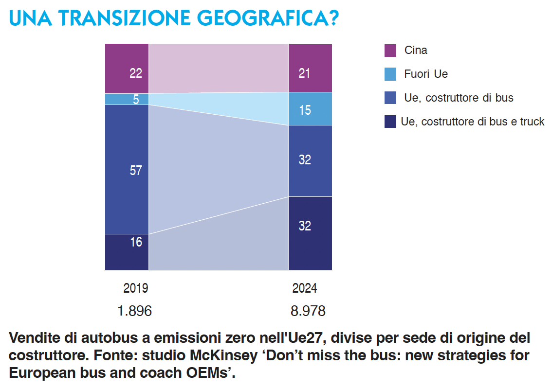Il mondo europeo dell’autobus sta attraversando una fase di profonda trasformazione, guidata da tre grandi tendenze: la crescente domanda di trasporto pubblico, la transizione verso veicoli a zero emissioni e l’emergere di soluzioni autonome. O almeno, questa è l’opinione della società di consulenza McKinsey, il cui Center for Future Mobility ha pubblicato in ottobre lo studio ‘Don’t miss the bus: new strategies for European bus and coach OEM’s’, corredato da un ricco apparato di dati e previsioni sull’andamento del settore.