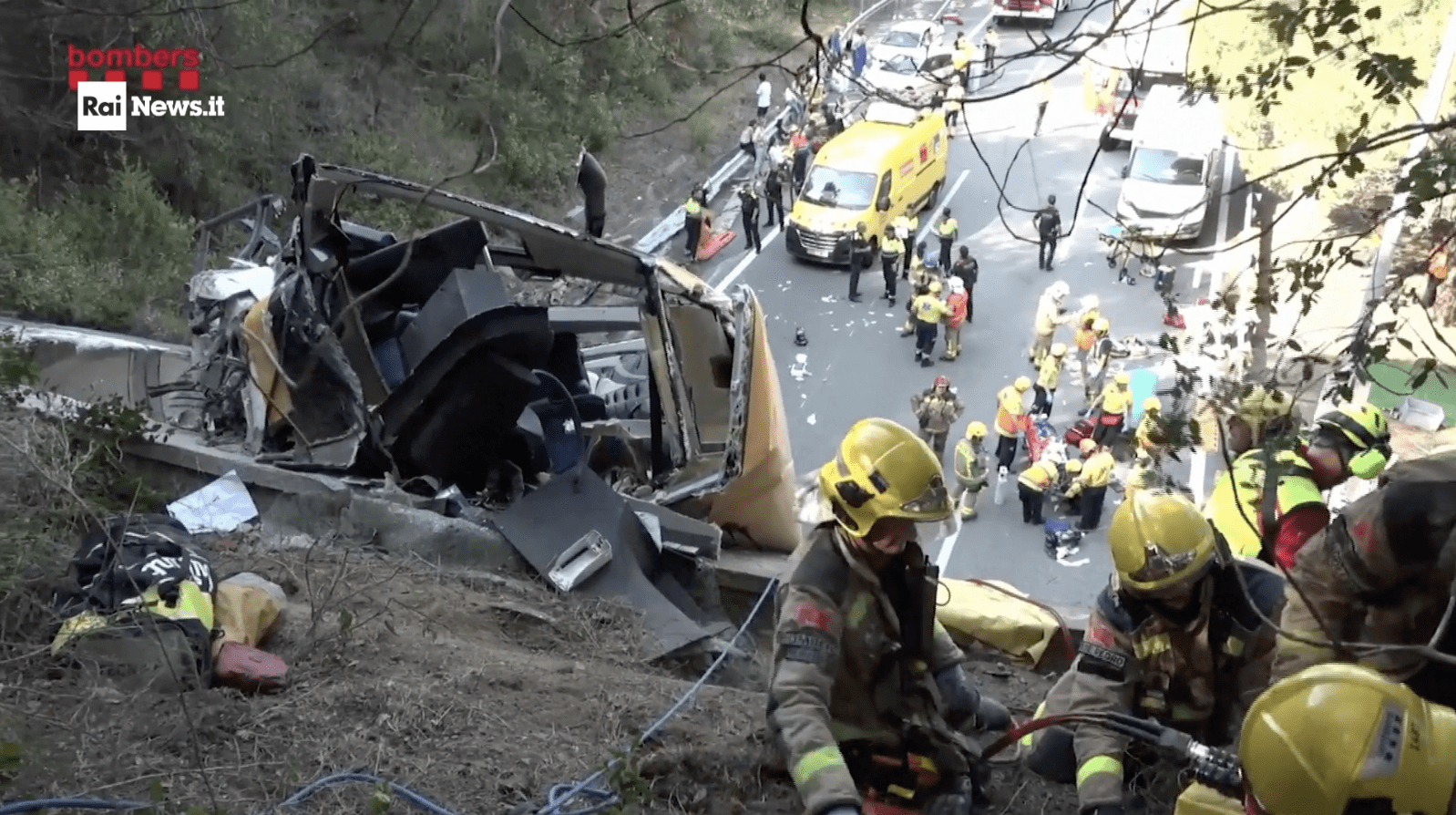 Autobus “prende il volo” salendo sopra il cordolo di una galleria: grave l’autista e (almeno) tre passeggeri. L’incidente in Spagna