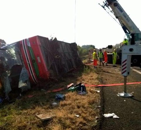 In questi giorni da bollino rosso sulle autostrade sono tanti gli italiani che si stanno muovendo verso le località turistiche per trascorrere qualche giorno di vacanza e molti lo stanno facendo in autobus. Ieri mattina, domenica 9 agosto, intorno alle ore 6:40, un nuovo incidente ha visto coinvolto un autobus di linea proveniente dalla Sicilia e diretto a Roma con una trentina di passeggeri a bordo. Il sinistro si è verificato all’altezza del km 655+600 nel tratto dell’autostrada A1 Milano-Napoli tra Pontecorvo e Ceprano, quando il bus è andato fuori strada accasciandosi sul fianco sul ciglio della carreggiata. Nell’incidente sono rimaste ferite quindici persone, alcune medicate sul posto, mentre una donna è stata trasportata in elicottero all’ospedale di Latina. Secondo le prime ipotesi si tratterebbe di un incidente probabilmente dovuto ad un colpo di sonno dell’autista. In uno dei prossimi numeri Autobus pubblicherà un’inchiesta sui tempi di guida che spesso non vengono rispettati. Risulta in ogni caso prematuro ipotizzare le cause dell’incidente, che risultano ancora da accertare, come dichiarato dalle autorità che stanno ancora indagando sul fatto.