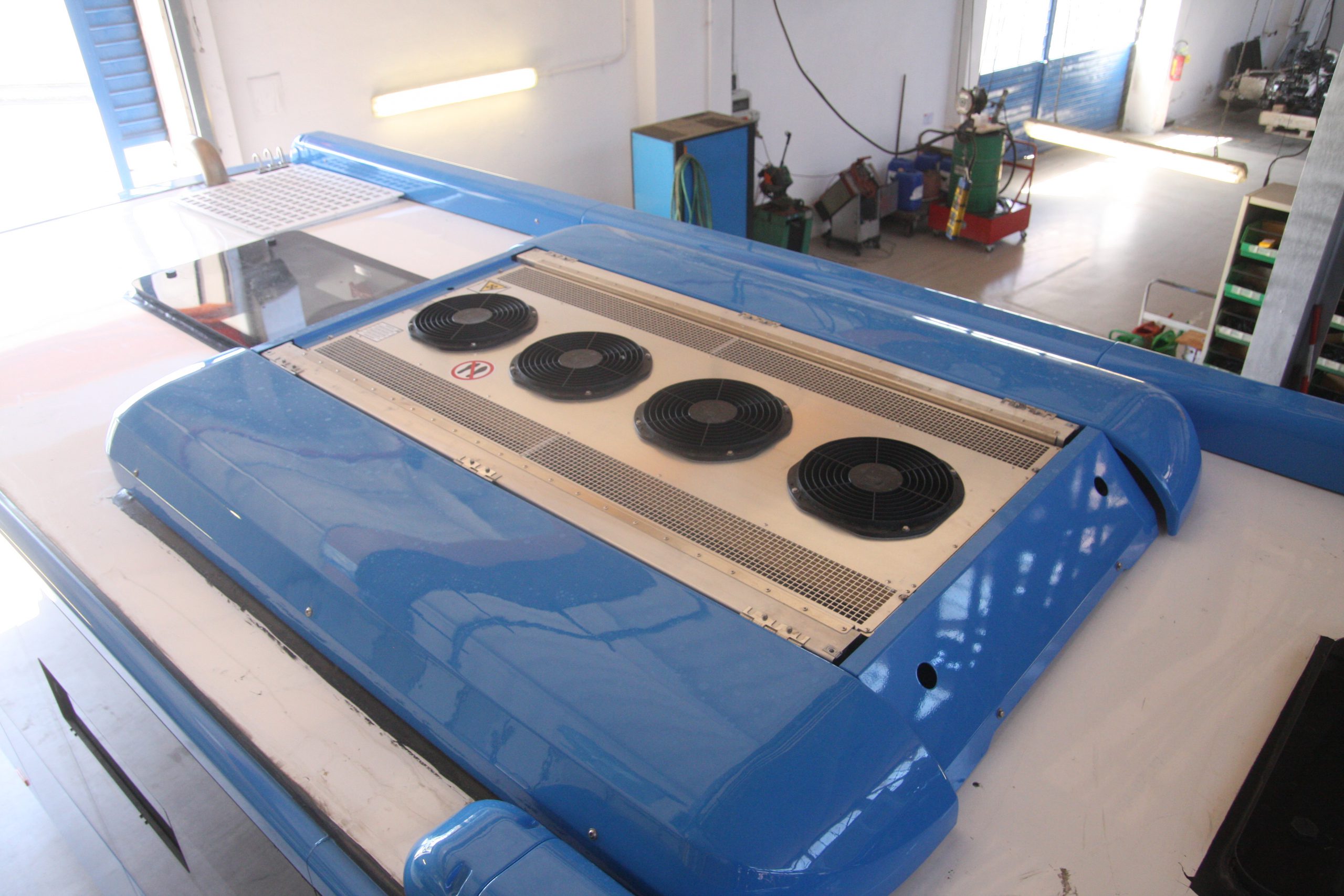Il pavimento è in compensato resinato, piano su tutta la lunghezza del mezzo e inclinato di circa l’8% in corrispondenza dell’assale posteriore.