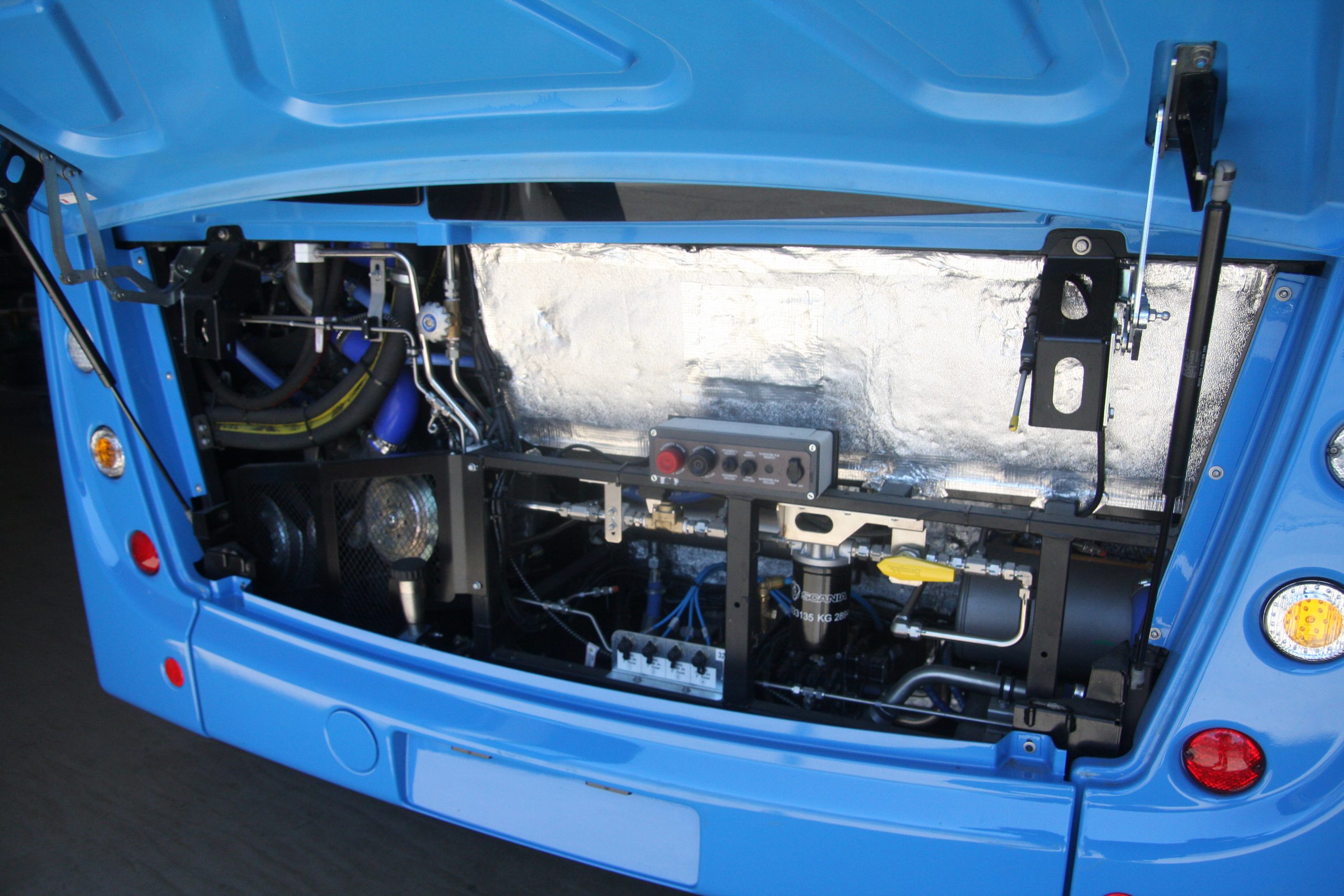 Come anticipato in apertura, la versione provata a Bologna presenta due serbatoi al tetto, vale a dire la dotazione minima prevista sul Citymood LNG, laddove quella a massima capacità di gas (e autonomia) è dotata di quattro bombole criogeniche. Queste ultime sono montate su una struttura a traliccio fissata nella parte anteriore del veicolo (seppur leggermente arretrate rispetto alle bombole CNG, per motivi di bilanciamento delle masse).