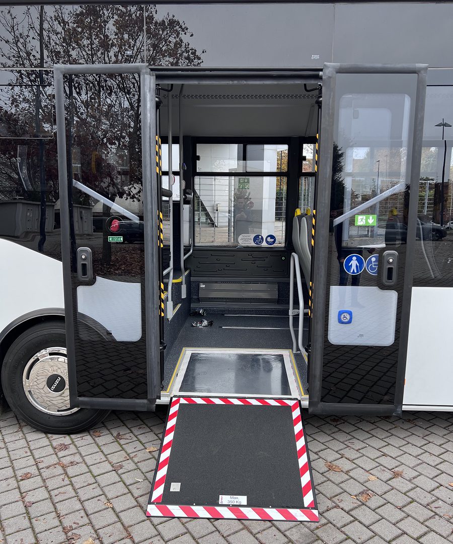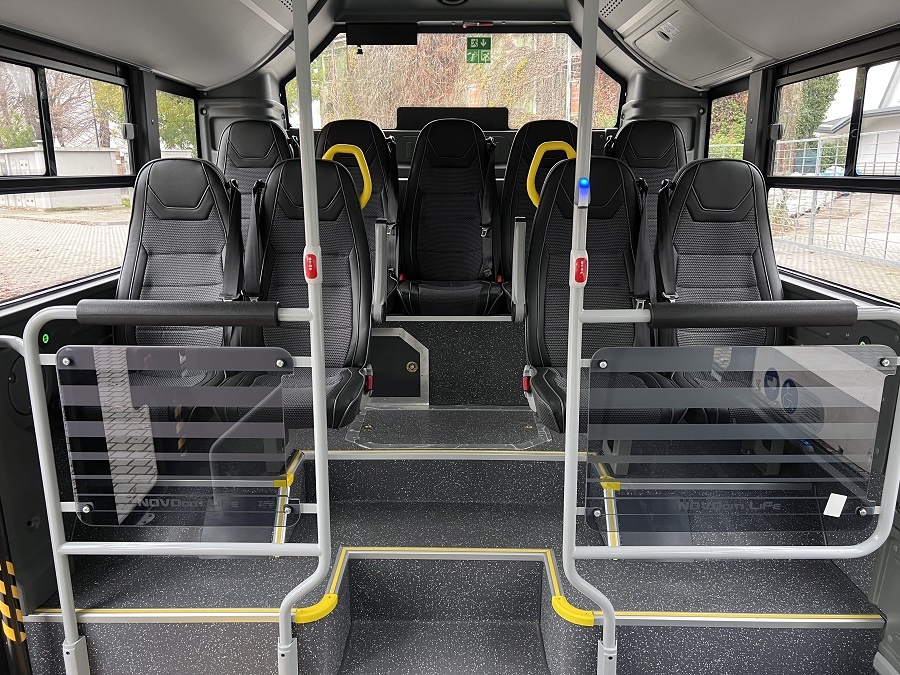 Tre anche le possibilità per l’allestimento dei sedili: di serie il rivestimento in tessuto o plastica, mentre come plus troviamo l’opzione in pelle. Previste di default le cinture di sicurezza a tre punti, l’illuminazione a soffitto e due display digitali che indicano le destinazioni. Previsti i finestrini scorrevoli su ogni lato: doppi standard, a vetro singolo opzionali.
