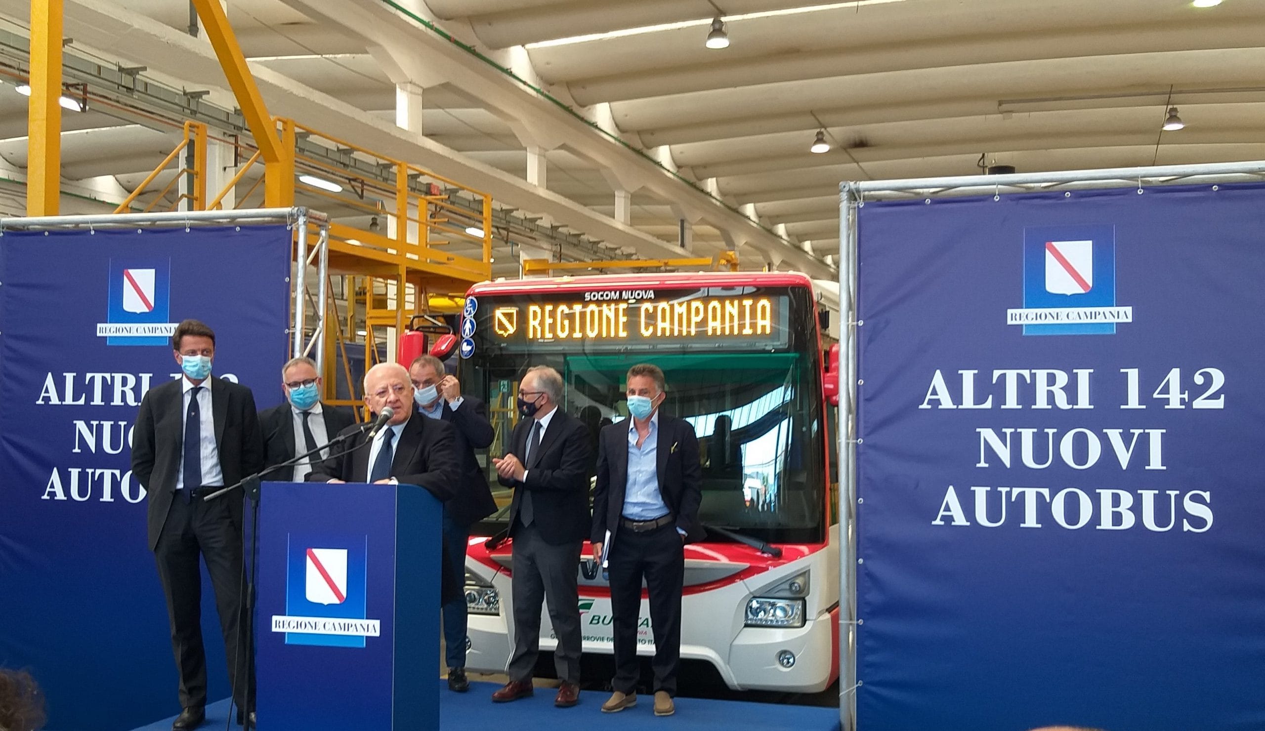Iveco Bus. In occasione della visita del Presidente della Regione Campania Vincenzo De Luca agli stabilimenti ferroviari della FIREMA SPA di Caserta è stata presentata una prima parte dei veicoli che Agenzia Campana per la Mobilità le Infrastrutture e le Reti – ACaMIR ha acquistato per l’implementazione del parco macchine destinato al TPL della regione Campania.