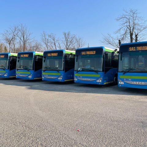 Curata dal concessionario Orecchia, Iveco firma la consegna di sei Crossway Low Entry diesel Euro 6 da dodici metri alla SAI di Treviglio, Bergamo.