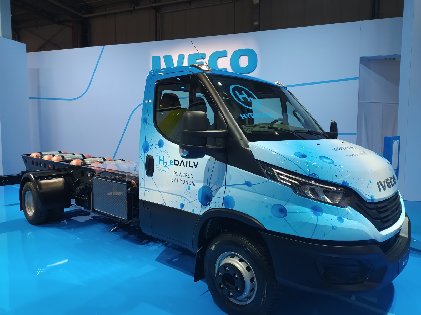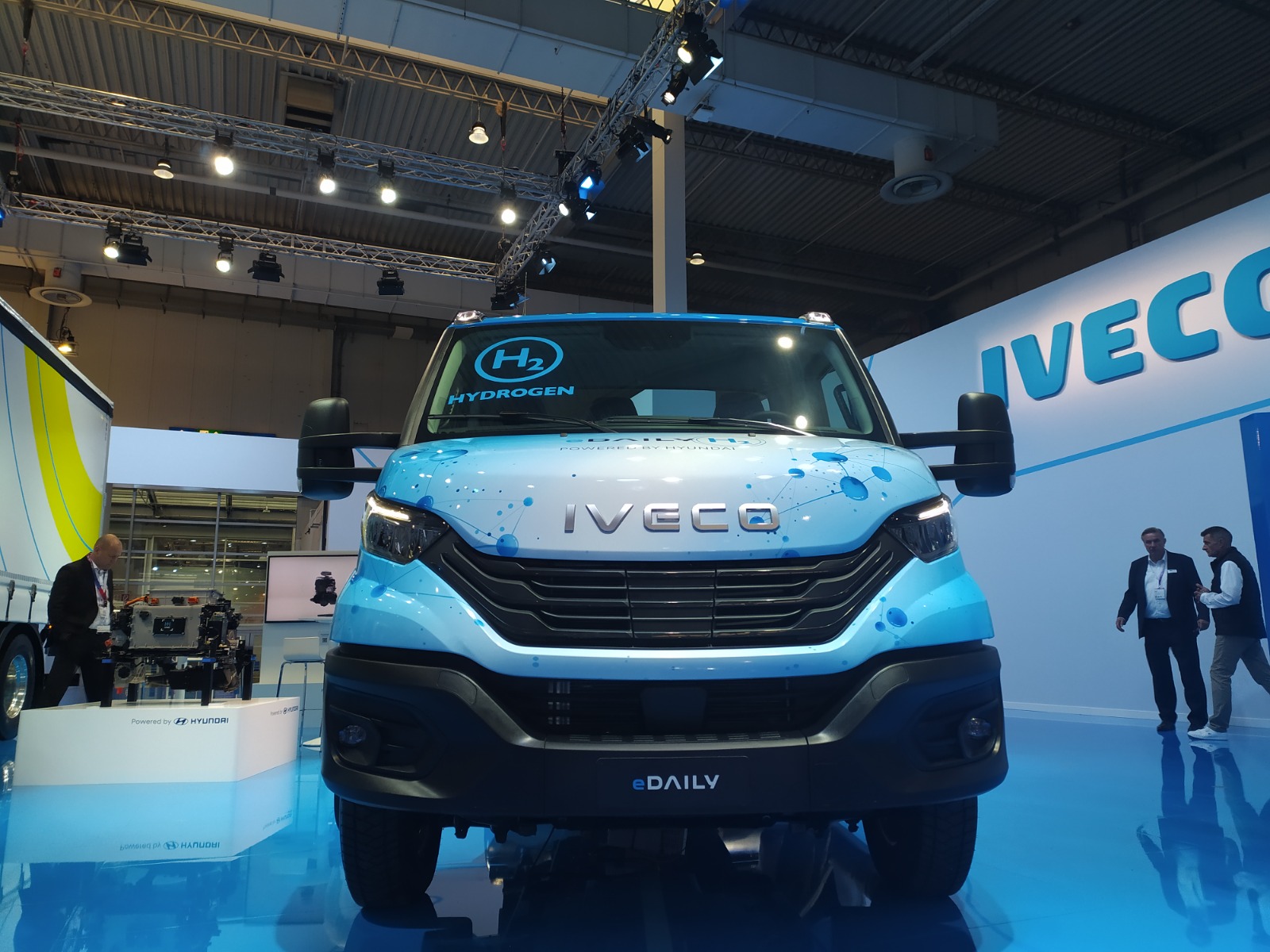 Il prototipo eDAILY FCEV è dotato di un sistema di celle a combustibile a idrogeno da 90 kW e di un motore elettrico da 140 kW. Sei serbatoi offrono una capacità di stoccaggio combinata di 12 kg di idrogeno. I