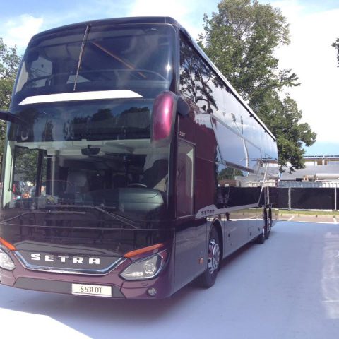Setra S 531 Dt, il tassello che mancava per una serie 500 ora al gran completo. Il nuovo double decker di Ulm va a chiudere il cerchio. I punti di forza? Impatto aerodinamico tagliato di netto (coefficiente aerodinamico a 0,35 per cento, meno 70 per cento rispetto al “papà” S 431 Dt) e dispositivi di sicurezza all’avanguardia: il nuovo due piani firmato Setra, svelato in un coraggioso colore “violetto Lamborghini”, vede il debutto nel segmento dei sistemi Aba 4 e Sideguard Assist. La produzione inizierà nel terzo trimestre 2017.