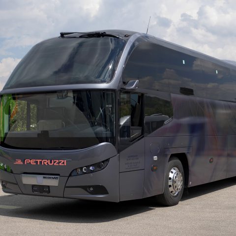 Il Neoplan Cityliner da poco entrato a far parte della flotta della Petruzzi è motorizzato MAN D26 di 470 cv Euro 6e e cambio automatizzato MAN TipMatic a 12 rapporti. Nei suoi 12,24 metri di lunghezza trovano posto 51 sedili super confortevoli, più quelli per autista e accompagnatore. Ogni passeggero può godere di una dotazione completa: impianto stereo MAN Topline con navigatore integrato e trasmissione delle immagini sul monitor passeggeri e in streaming Bluetooth e DAB+, prese USB integrate nei sedili, selleria PremiumLine First con rivestimento centrale in tessuto con doppia imbottitura e poggiatesta regolabile in altezza, regolazione automatica della seduta con il sedile reclinato, tavolini posteriori, sedili allargabili, portariviste a rete, poggiapiedi a due posizioni, router WiFi e macchina caffè.