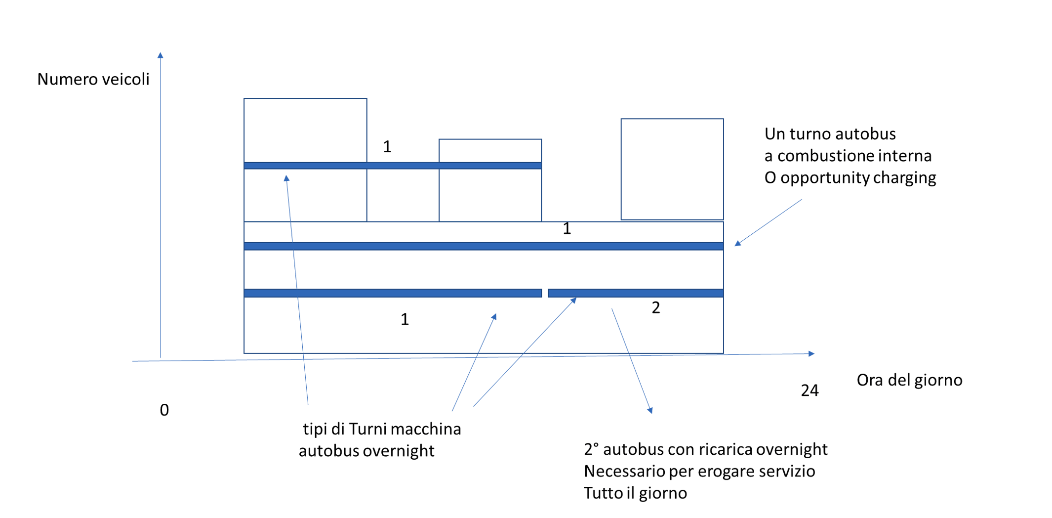 Fig. 1 – tipologie di turni macchina con diversi tipi di autobus.