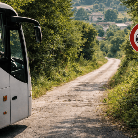 C’è tutta una preparazione psico-fisica quando ci si imbatte nella condizione di dover sperimentare una strada, soprattutto quando questo accade all’ultimo momento e la fortuna gioca un ruolo tutt’altro che marginale. Entriamo nel pratico, per far rivivere questo brivido a chi guida ogni giorno. Perché sì, è un brivido, e spesso è accompagnato anche da una certa paura. Inutile negarlo. Hai un gruppo a bordo e il tempo non è tuo alleato. Hai già accumulato ritardo per inconvenienti non dipendenti da te. Ti trovi in una zona un po’ collinosa, dove il paesaggio è tutto uguale e, nonostante la segnaletica, le uniche due strade disponibili non hanno caratteristiche rassicuranti per un torpedone. L’asfalto è rovinato, ai margini ci sono frasche e alberi, e in lontananza, su entrambe le direttrici, compaiono stretti agglomerati di abitazioni. «Dove cavolo sono finito…» Anche se in testa risuona un termine leggermente diverso.