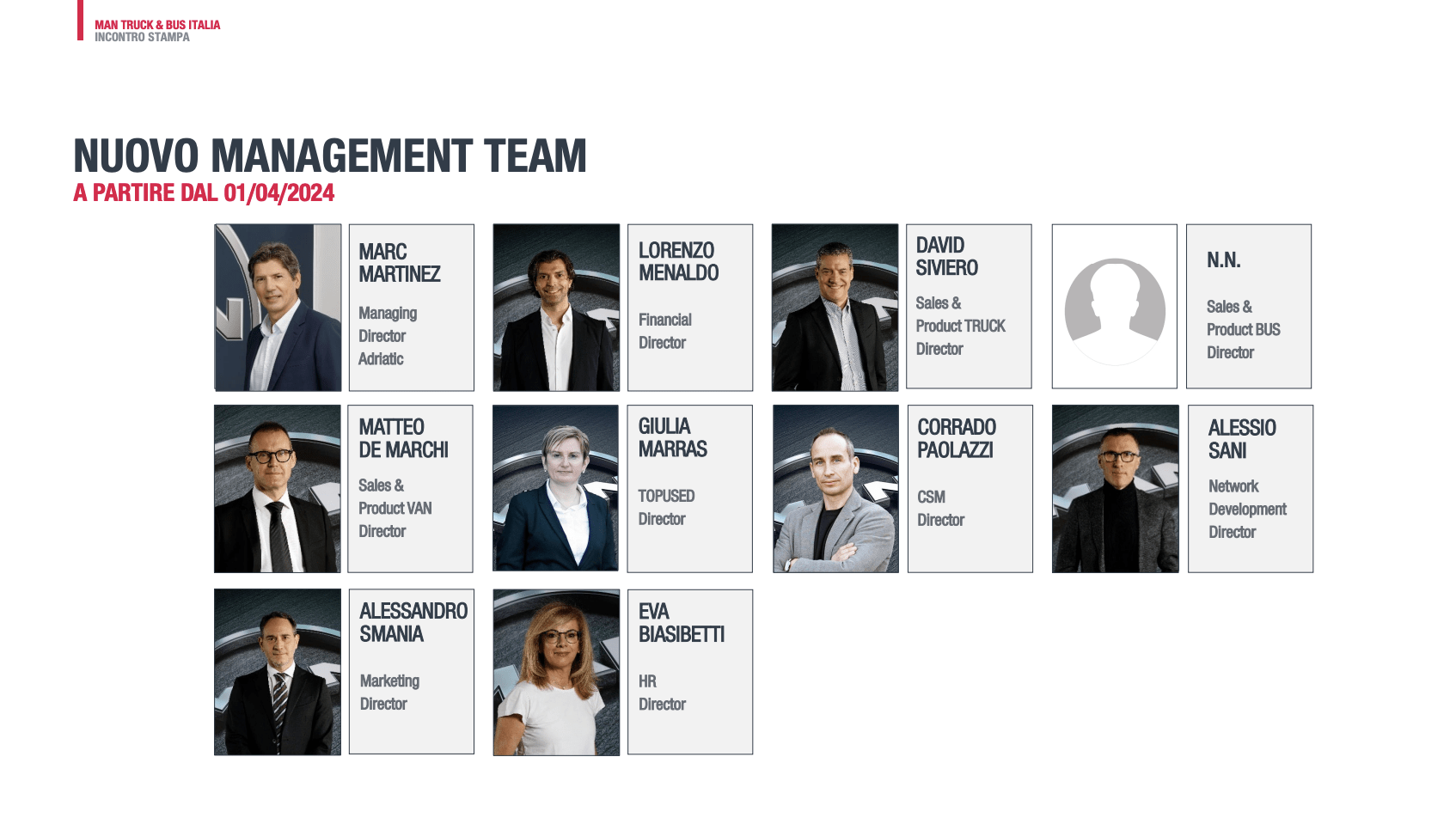 L’incontro odierno è poi servito per illustrare alcuni ‘ritocchi’ che Martinez ha apportato alla squadra MAN in Italia, con la sede che dalla fine dello scorso anno si è trasferita presso il quartier generale Volkswagen a Verona. Dal 1° aprile, David Siviero sarà il nuovo responsabile della divisione Truck, al posto di Franco Pedrotti. Sempre da aprile, Giulia Marras sarà a capo della divisione TopUsed, con ulteriori investimenti previsti nel corso di quest’anno, che si aggiungono all’ultimo arrivato, il centro di Caorso, inaugurato lo scorso ottobre. Al momento non è ancora stato reso noto – neanche ufficiosamente – chi prenderà il posto lasciato vacante da Siviero a capo della divisione italiana bus&coach. Lo (la?) conosceremo presto, ci ha assicurato Alessandro Smania, marketing director MAN Truck&Bus Italia.