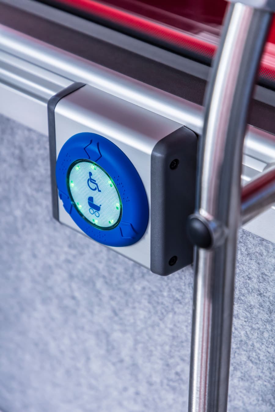 Tra gli accessori installati sul veicolo della prova, inoltre, segnaliamo il sistema OptiView (telecamere al posto degli specchi retrovisori), l’Esp, il Cruise Control, l’assistente alla frenata di emergenza Eba, le luci porta addizionali, l’illuminazione interna ‘ambient’ a colorazione programmabile, il parabrezza riscaldato, le tendine per il conducente a regolazione elettrica, le prese doppie Usb tipo A e C. Nell’ambito delle dotazioni richieste dal Gsr2, il Lion’s City ha affidato a Mobileye il sistema di monitoraggio dell’angolo morto, del rilevamento ostacoli e del controllo di cambio corsia, nonché il riconoscimento dei segnali stradali. Il monitoraggio della pressione pneumatici è invece di Continental, come da tradizione MAN. Completano gli allestimenti, un impianto indicatori di percorso a led ed un sistema infotainment con monitor interno tipo stretch da 29 pollici.