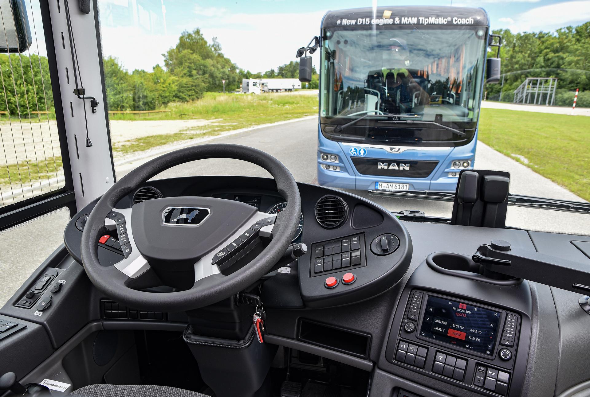 Le tipologie di cambio per questo autobus interurbano includono anche il cambio automatico a 12 rapporti MAN TipMatic Coach di nuova generazione, disponibile per la variante D15 a partire dalla classe di potenza da 330 CV (243 kW). Tra le principali novità introdotte, un miglioramento del comportamento alla partenza, l’ottimizzazione della centralina elettronica del cambio e il comando EfficientCruise con funzione EfficientRoll per ridurre i consumi. Sono poi disponibili le funzioni “SmartShifting” per l’assistenza al passaggio a marce superiori per tutte le dodici velocità e “Idle Speed Driving” con Stop-and-Go per destreggiarsi facilmente nel traffico.