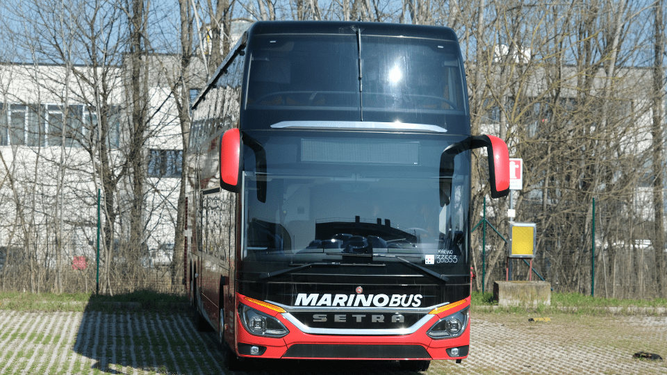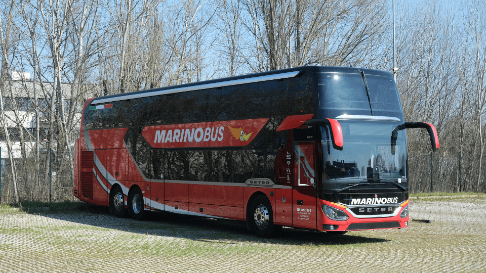 I Setra S 531 DT per MarinoBus sono coperti da un contratto di assistenza di 5 anni/900.000 km, supportato dalla piattaforma digitale OMNIplus Uptime per la manutenzione predittiva e l’ottimizzazione delle performance.