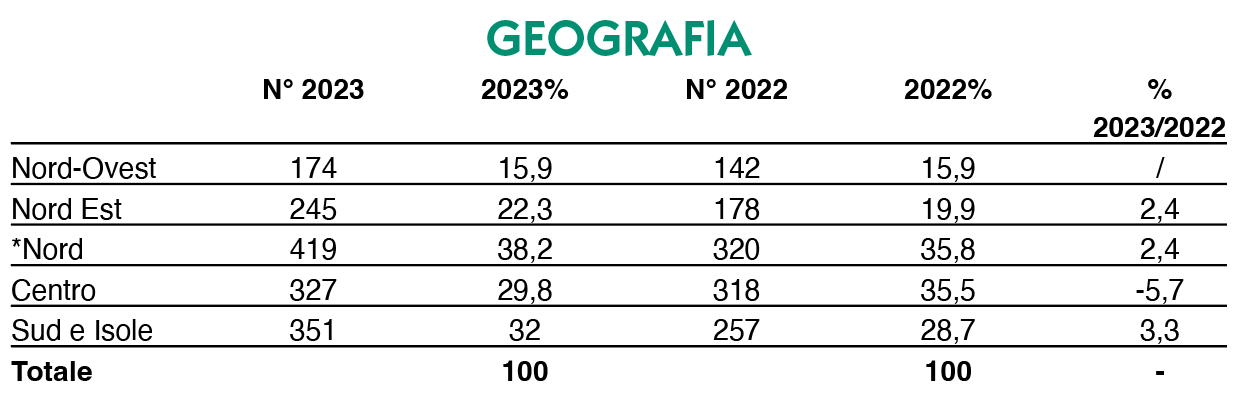 Interessante vedere da dove arrivano le 1.097 targhe del 2023. Bene, il Sud e le Isole primeggiano con 351 immatricolazioni, seguite dal Centro Italia (327), Nord Est (245) e Nord Ovest (174). Certo, considerando il Nord nel suo insieme, le immatricolazioni sono 419.