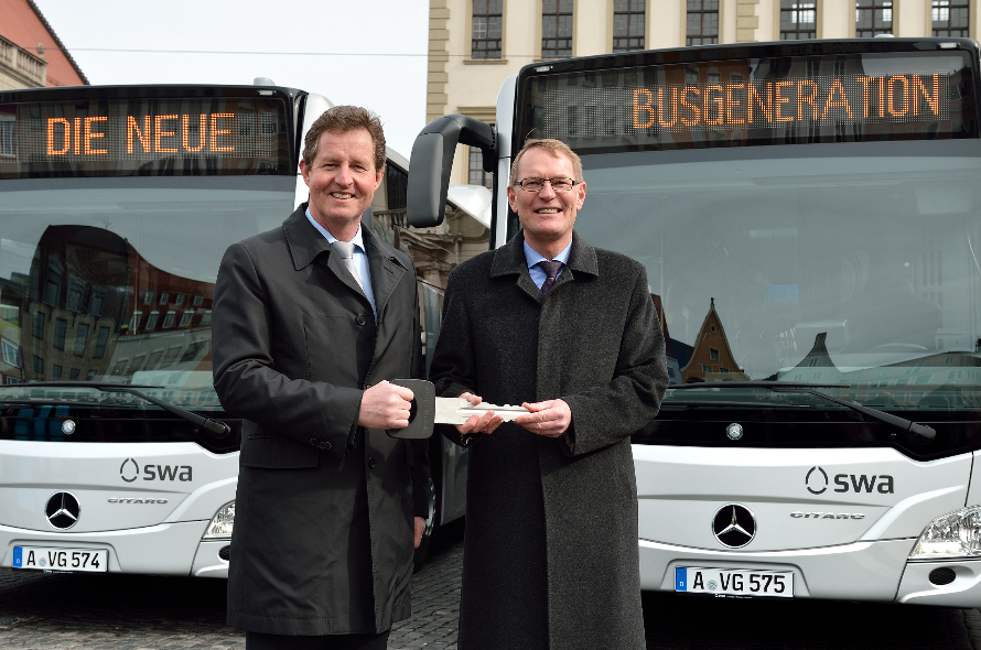 Venerdì scorso Mercedes-Benz ha consegnato 12 nuovi Citaro alimentati a gas naturale alla public company Augsburger Stadtwerke che si occupa dei servizi pubblici della città di Augusta, compreso il trasporto pubblico. Alla cerimonia di consegna dei mezzi, tenutasi nella piazza del municipio della città, erano presenti Hartmut Schick, Head of Daimler Buses, Walter Casazza, Manager di Augsburger Stadtwerke […]