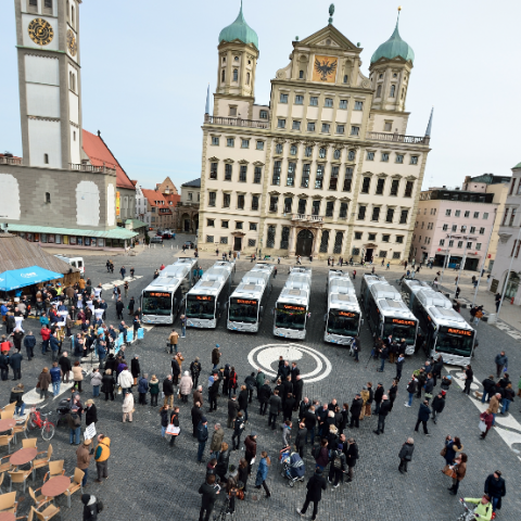Venerdì scorso Mercedes-Benz ha consegnato 12 nuovi Citaro alimentati a gas naturale alla public company Augsburger Stadtwerke che si occupa dei servizi pubblici della città di Augusta, compreso il trasporto pubblico. Alla cerimonia di consegna dei mezzi, tenutasi nella piazza del municipio della città, erano presenti Hartmut Schick, Head of Daimler Buses, Walter Casazza, Manager di Augsburger Stadtwerke e Kurt Gribl, sindaco di Augusta. I mezzi, frutto dell’impegno di Mercedes-Benz nello sviluppo di tecnologie pulite a basso impatto ambientale, andranno ad arricchire la flotta di Augsburger Stadtwerke, composta da oltre un anno da 89 mezzi a gas naturale, quindi a zero emissioni di CO2. I 12 Citaro si aggiungono inoltre al primo Citaro a gas naturale consegnato alla città lo scorso dicembre.