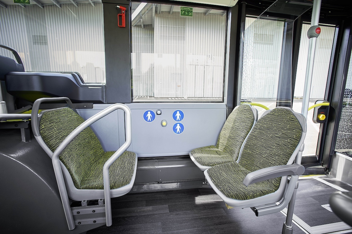 La sicurezza e il supporto per il conducente comprendono anche il limite di velocità a 33 km/h attivabile come optional e il sistema di allarme acustico del veicolo. La porta della cabina di guida con una parete divisoria per l’intera larghezza della porta crea distanza, mentre un filtro attivo con funzione antivirale garantisce un’aria sana a bordo.