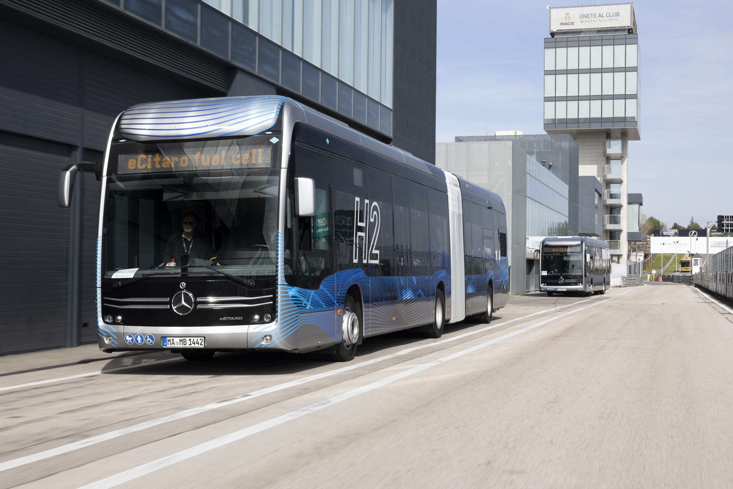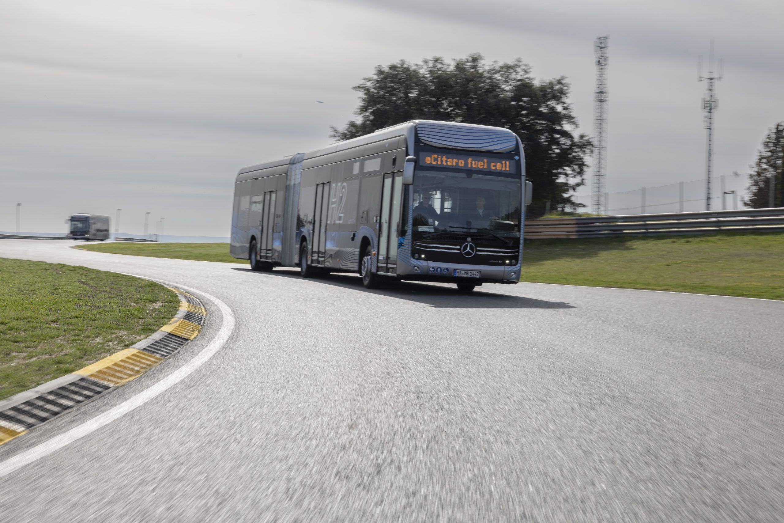 Il lancio ufficiale è arrivato alle porte dell’estate 2023, quando Daimler Buses scelse il palcoscenico del Summit UITP di Barcellona per la premiere mondiale del suo primo autobus a idrogeno, il Mercedes eCitaro Fuel Cell, in versione articolata da 18 metri.
