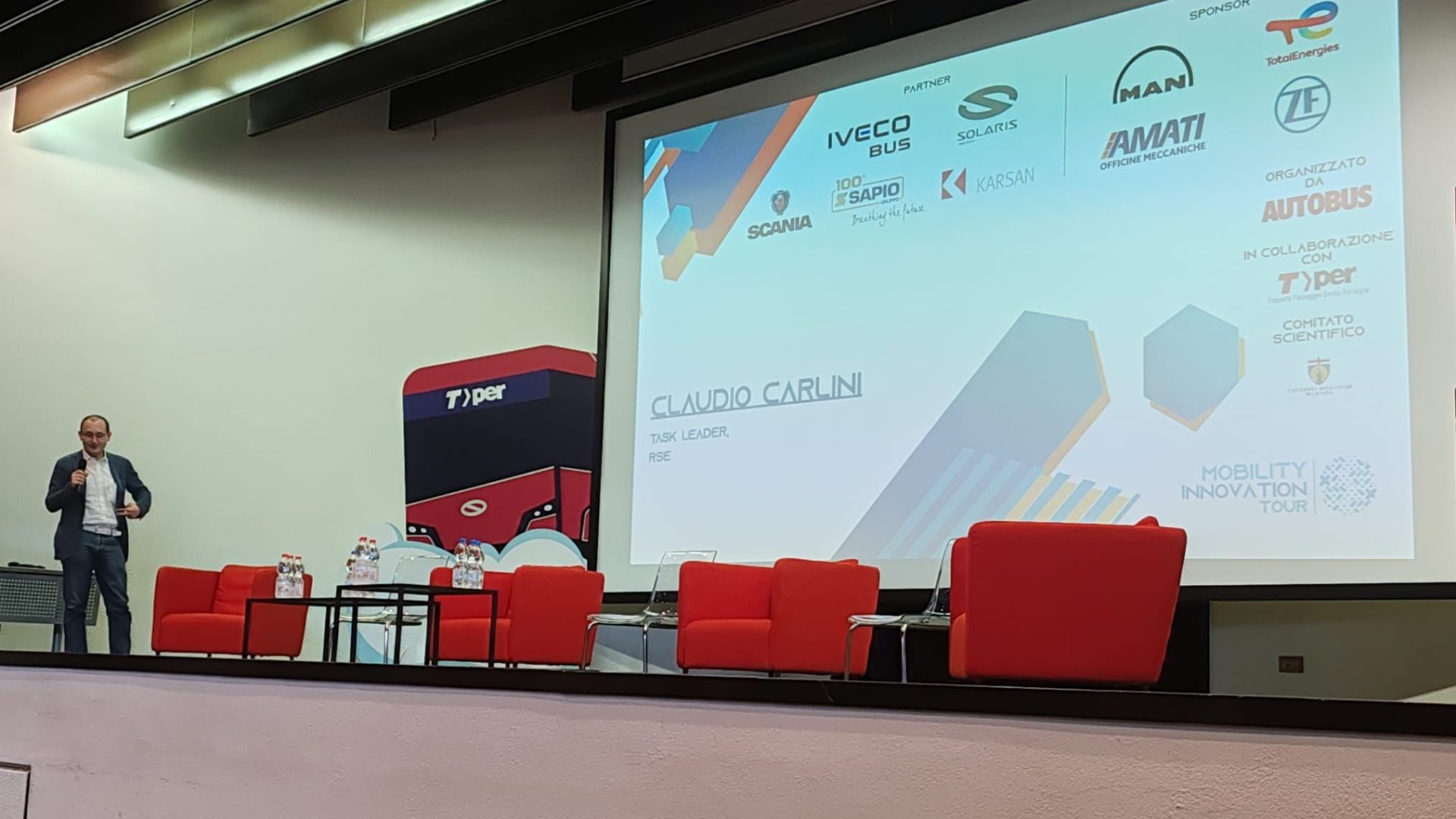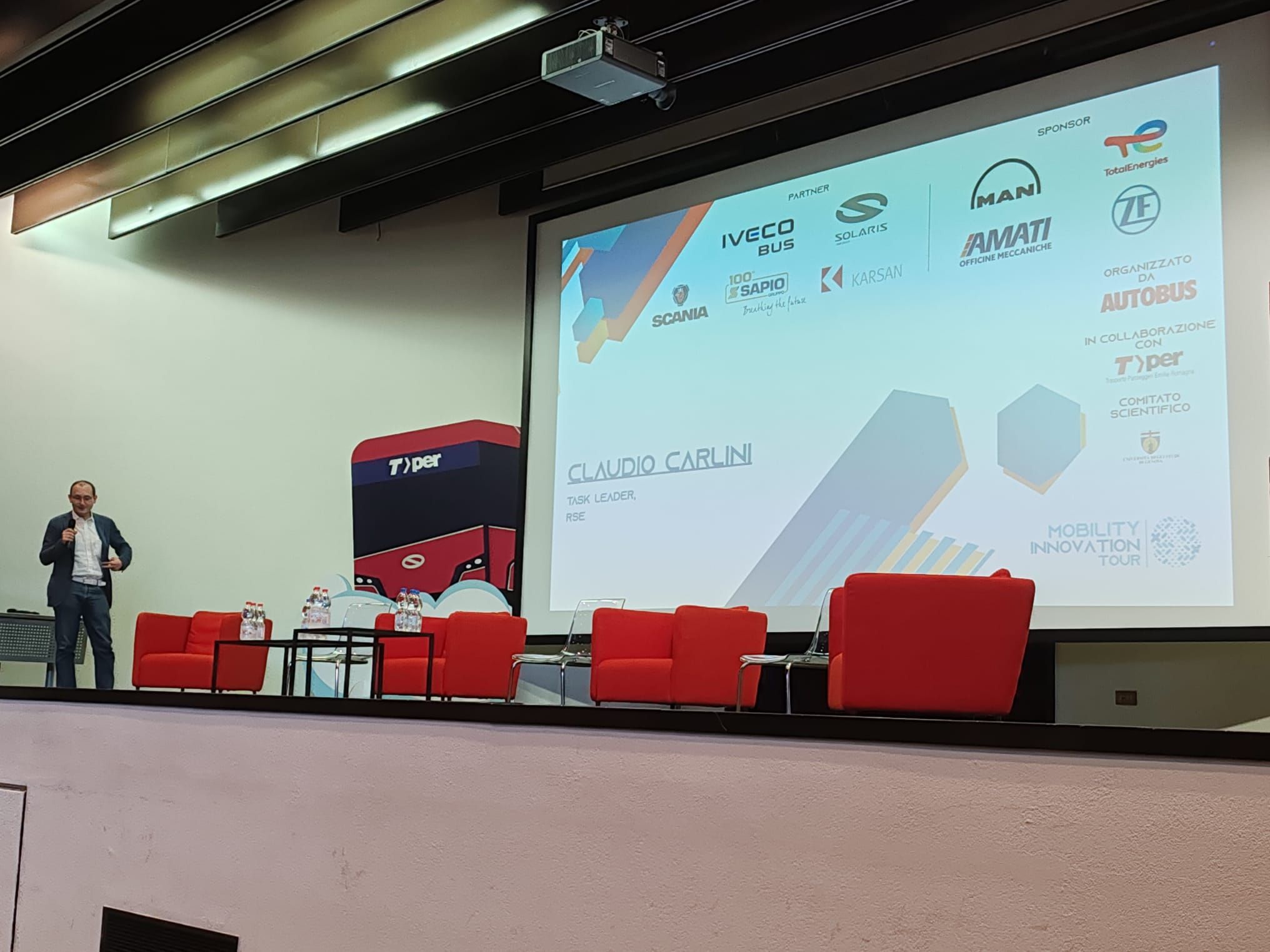 Fabio Monzali, Responsabile impianti e infrastrutture Tper, aprendo la tavola rotonda, ha dichiarato: «Abbiamo iniziato a lavorare sull’idrogeno con progettualità già diversi anni fa e lo abbiamo fatto con i migliori specialisti del settore: insieme al partner Wolftank abbiamo costituito una joint-venture, TPH2, per l’ideazione e la realizzazione di quattro impianti di rifornimento e stoccaggio di idrogeno. Un progetto imponente, sia dal punto di vista economico che dal punto di vista dei mezzi coinvolti, che da un lato ci fa onore, ma dall’altro ci dà il grande onere di avere una flotta in servizio tutti i giorni adeguata al profilo di missione dei mezzi».