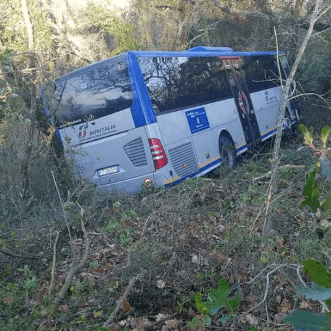 Un autobus di linea è finito fuoristrada, incagliandosi in mezzo alle fronde di un bosco. Accade a Montecchio (Terni): ieri sera alle 23.00, forse per un colpo di sonno dell’autista, il veicolo è uscito dalla carreggiata.