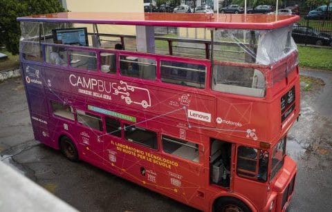 Un autobus, quattro scuole di Milano, e tanta, tanta (tanta!) tecnologia. Il progetto CampBus lanciato dal Corriere della sera è in pieno svolgimento. Protagonista, un autobus double-decker londinese riadattato a laboratorio mobile ed equipaggiato con le «tecnologie emergenti che trasformeranno la nostra vita nei prossimi anni», come si legge nella presentazione. Vale a dire: 5G, realtà aumentata, realtà virtuale e intelligenza artificiale. Con l’obiettivo di sottolineare l’utilità della tecnologia per il futuro della scuola, provando non solo a immaginare, ma proprio a costruire (nel bus!) una classe del futuro.