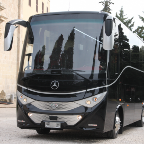 L’ultima novità del listino New Car è rappresentata dal Calipso Star, su telaio Mercedes Atego. Il Calipso è nato su chassis Iveco, configurazione con cui è stato sfoggiato all’Ibe 2018. Una versione alla quale si è aggiunta quella… con la Stella (e il nome del mezzo è spiegato). Il Calipso su telaio Mercedes, lungo 8,75 metri e in grado di trasportare fino a 35 persone, è il frutto di un preciso lavoro progettuale, motivato dal fatto che lo chassis dell’Atego prevede il gruppo di aspirazione davanti alla ruota anteriore destra, proprio dove il veicolo da trasporto passeggeri ha la porta d’ingresso. Spostare il filtro significa ‘giocarsi’ il nulla osta di Stoccarda.