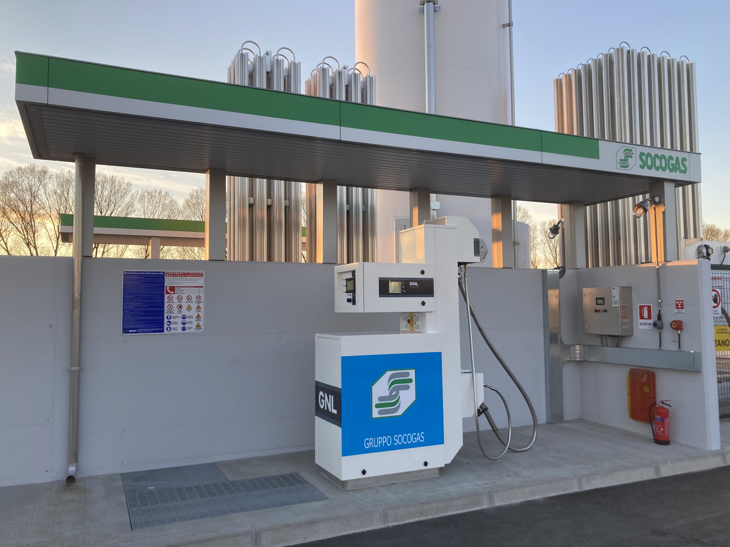 Il Gruppo Socogas apre a Fidenza un nuovo distributore di metano liquido (LNG) per mezzi pesanti e metano gassoso (L-CNG) per auto e furgoni.