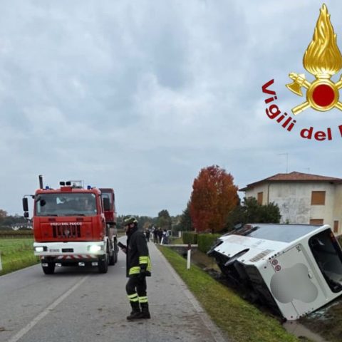 Attorno alle 7:30 di oggi, mercoledì 29 ottobre, lungo la via Maggiore, nel comune di Piavon di Oderzo (provincia di Treviso) un autobus di studenti si è scontrato frontalmente contro con automobile. Secondo quanto ricostruito e riportato dal Corriere del Veneto, l’incidente frontale tra il bus e il Suv è avvenuto dopo una curva: da quanto emerso, la vettura avrebbe invaso la corsia opposta e nulla ha potuto l’autista del torpedone, che è finito nel fossato (come da immagine).