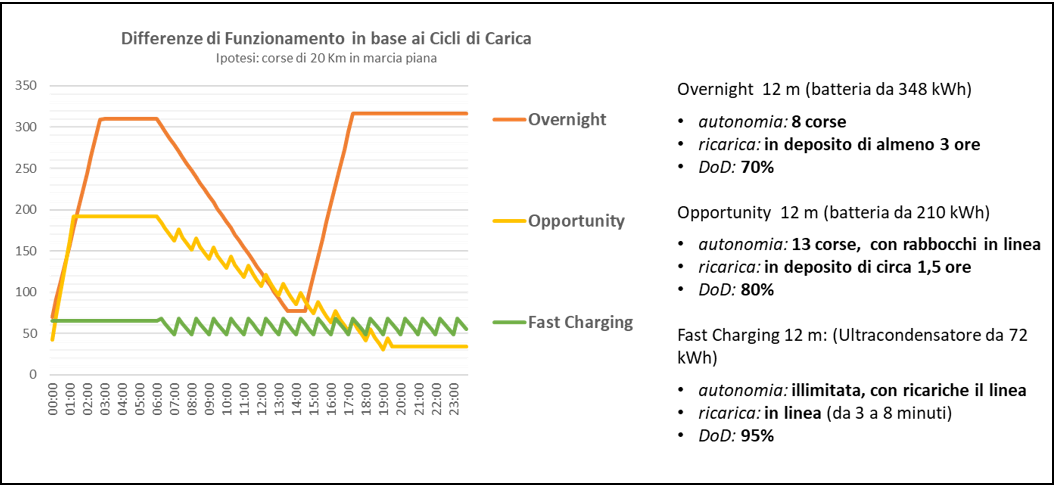 Esempio di Cicli di Funzionamento giornaliero per autobus elettrici