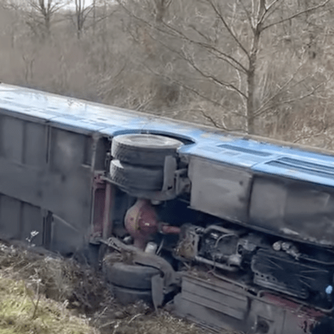 L’autista ha sterzato per scongiurare il frontale, uscendo dalla carreggiata e ribaltandosi su un lato, senza cappottamento. Tutte i passeggeri a bordo dell’autobus – ragazze e ragazzi tra i 14 e i 18 anni – si sono salvati senza riportare ferite particolari; alcuni sono stati comunque trasferiti per accertamenti all’ospedale. Il ferito più grave è l’uomo che era alla guida dell’automobile, che è rimasto incastrato nella vettura.