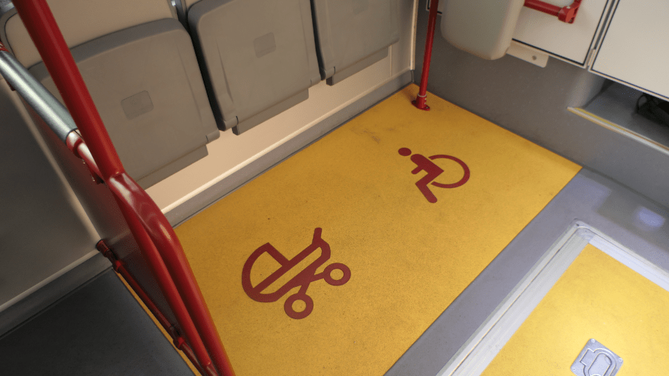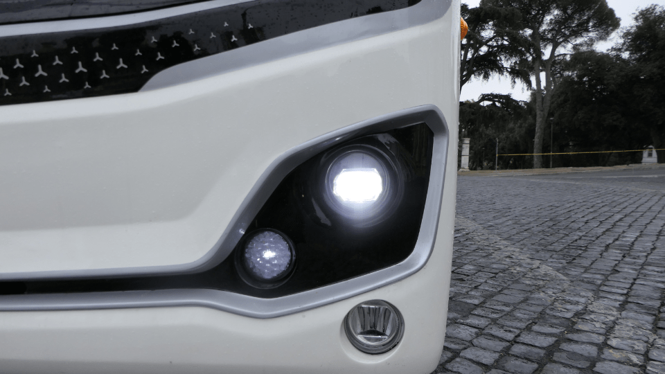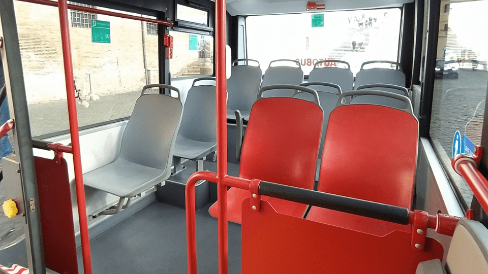 La sensazione mettendo piede a bordo – tramite porta doppia – è quello di essere all’interno di un veicolo più grande: il merito è delle ampie vetrate che corrono per tutte le fiancate. E che permettono all’utenza un’esperienza di viaggio più godibile (soprattutto nel caso di Roma!), grazie anche alla silenziosità: fonometro alla mano, sono appena 64 i decibel di media, peraltro per le strade trafficate della Capitale. Come detto i posti totali a bordo sono 23: nel nostro caso la configurazione è di 11 sedute, postazione disabile e sedile dell’autista, che può godere di un cockpit largo, spazioso e separato dall’area passeggeri, equipaggiata con quattro prese usb per la ricarica dei dispositivi. Un’accortezza che fa piacere.