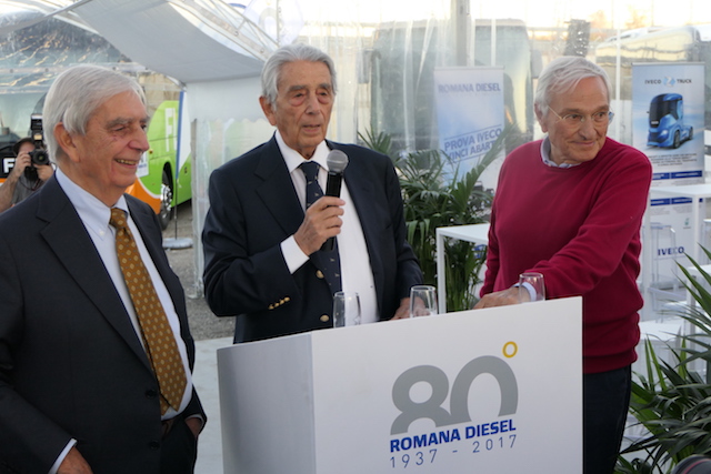 Alla festa degli 80 anni non poteva mancare Mario Artusi, oggi Vice President: «Il marchio Roma Diesel nasce nel 1978 con l’acquisto di quel appezzamento di terreno che vede la in alto (ci indica una porzione dell’attuale area n.d.r.), qui era tutta campagna, non ci crederà ma è così, non c’era proprio nulla. Con il primo capannone abbiamo iniziato come officina per la riparazione di autobus e camion. Poi piano ci siamo allargati. Oggi abbiamo quattro sedi: Roma, Latina Viterbo e Frosinone.